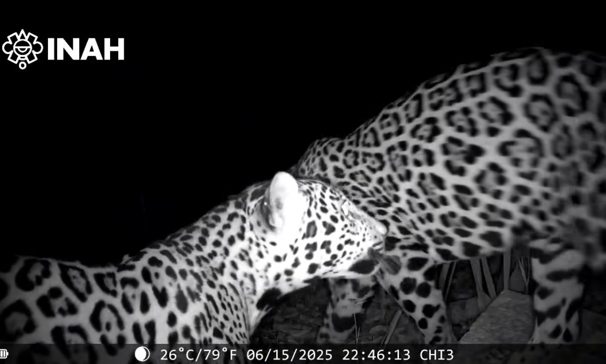 El Instituto Nacional de Antropología e Historia (INAH) difundió un video captado por una cámara trampa que muestra a dos jaguares deambulando cerca de la zona arqueológica de Chichén Itzá, en el municipio de Tinum, Yucatán. El dispositivo, instalado como parte de un programa de monitoreo de fauna local, permitió registrar a esta especie emblemática en un sitio de gran simbolismo para la cultura maya.