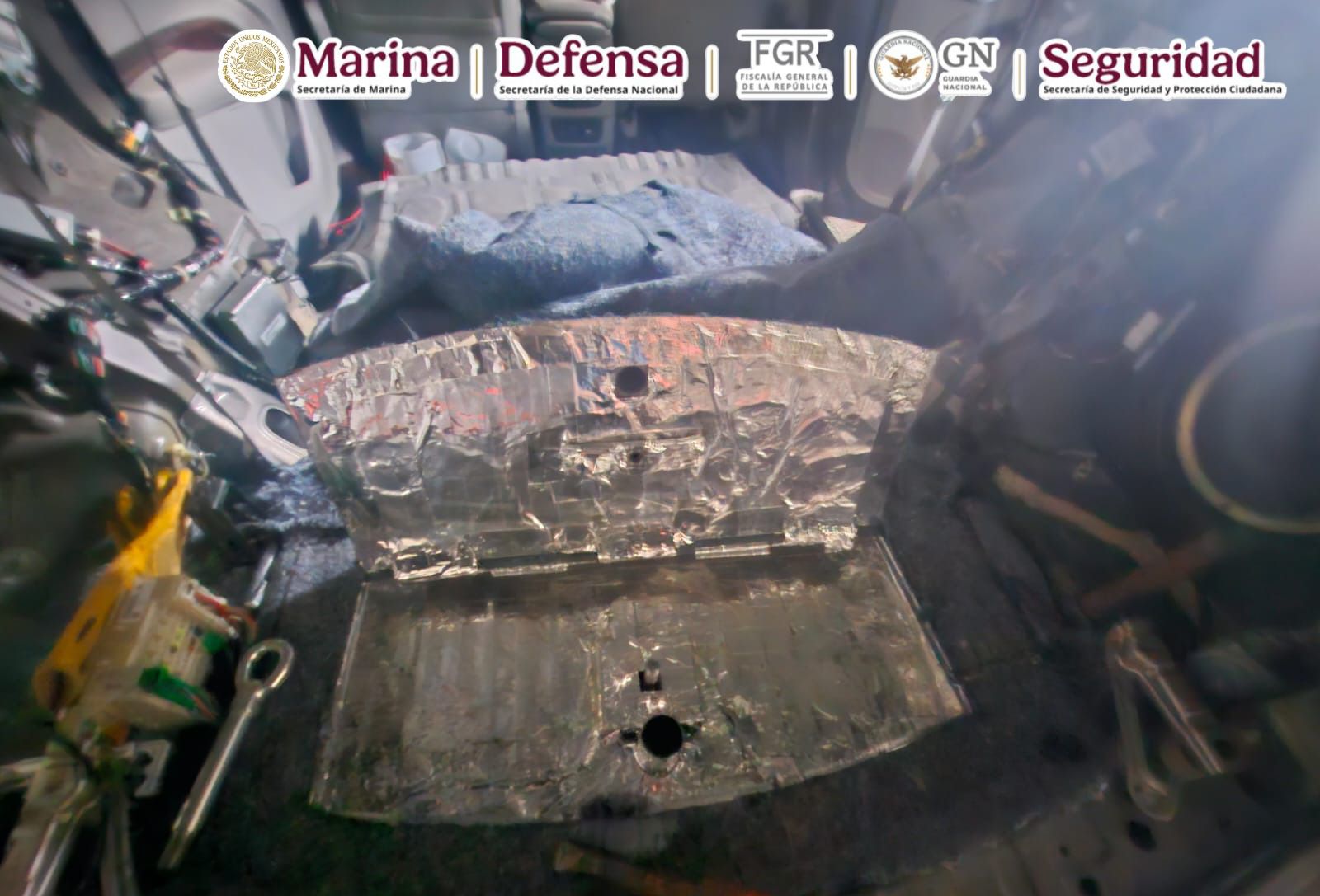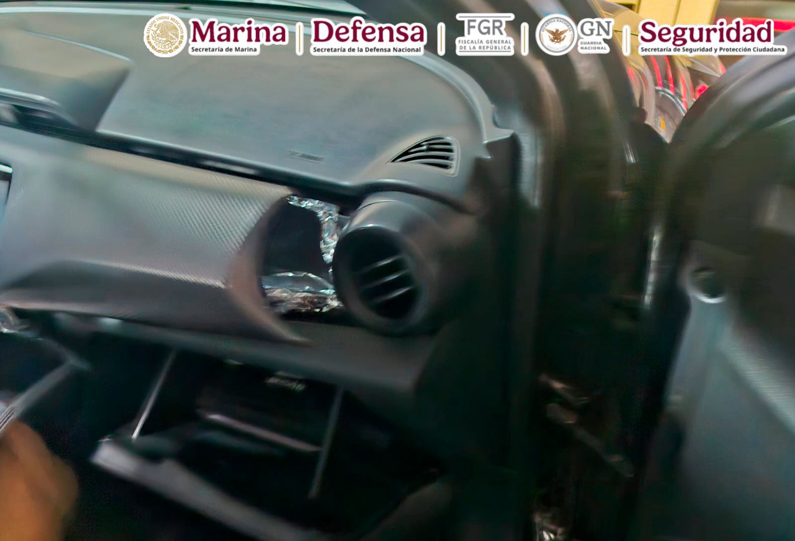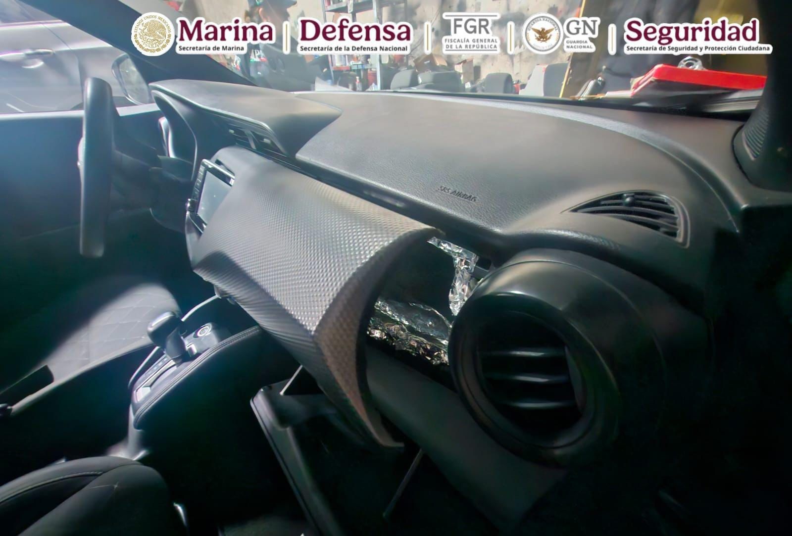 Esta acción se derivó de trabajos de inteligencia, lo que permitió identificar un inmueble en el municipio de Playas de Rosarito, del mismo estado, donde se dio cumplimiento a una orden de cateo y fueron asegurados 10 vehículos modificados para el transporte de material ilícito y 10 cartuchos útiles.