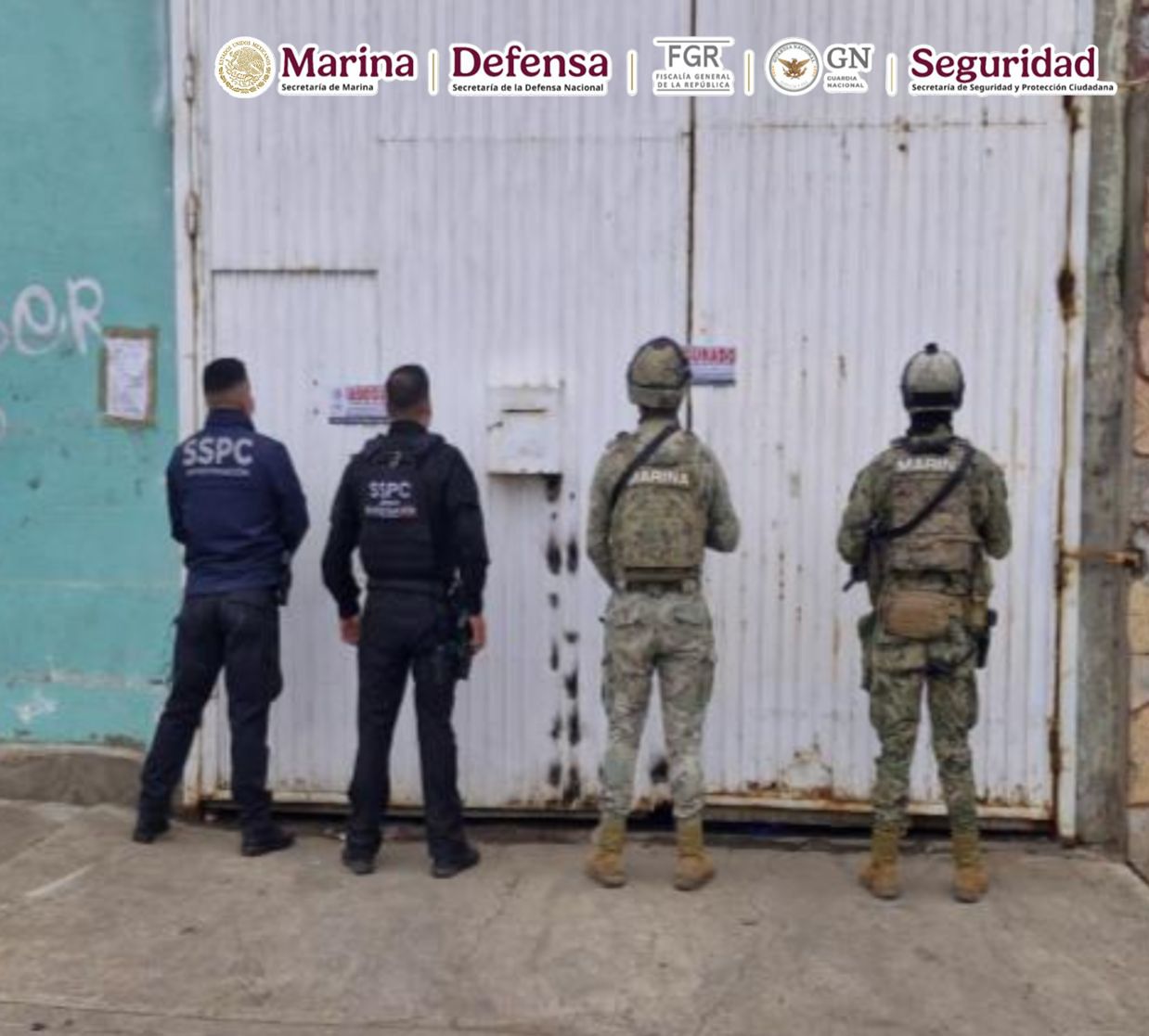 En el marco de la Estrategia Nacional de Seguridad, el día de ayer, en un operativo conjunto, personal de la Secretaría de Marina (Semar) a través de la Armada de México y de la Secretaría de Seguridad Pública del Estado de Baja California, en coordinación con la Secretaría de la Defensa Nacional (Defensa), Fiscalía General de la República (FGR), Guardia Nacional (GN) y Secretaría de Seguridad y Protección Ciudadana (SSPC) aseguraron un inmueble presuntamente utilizado como bodega de almacenamiento de drogas sintéticas, vinculado a un grupo delictivo que opera en esa zona.