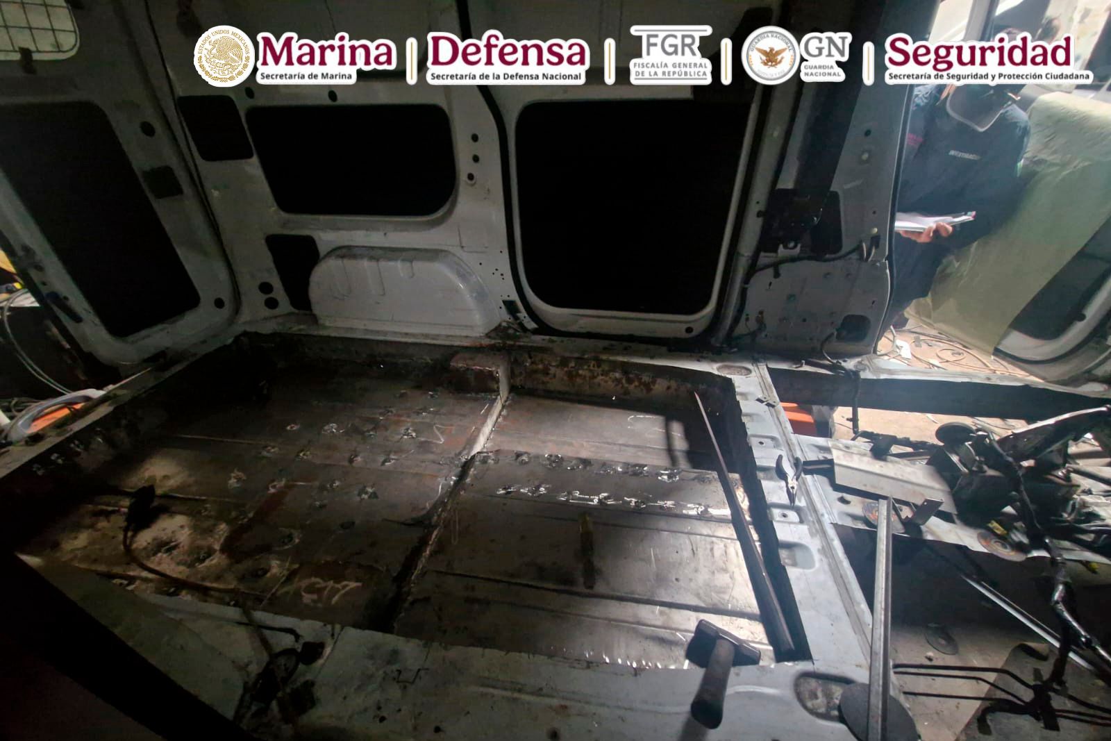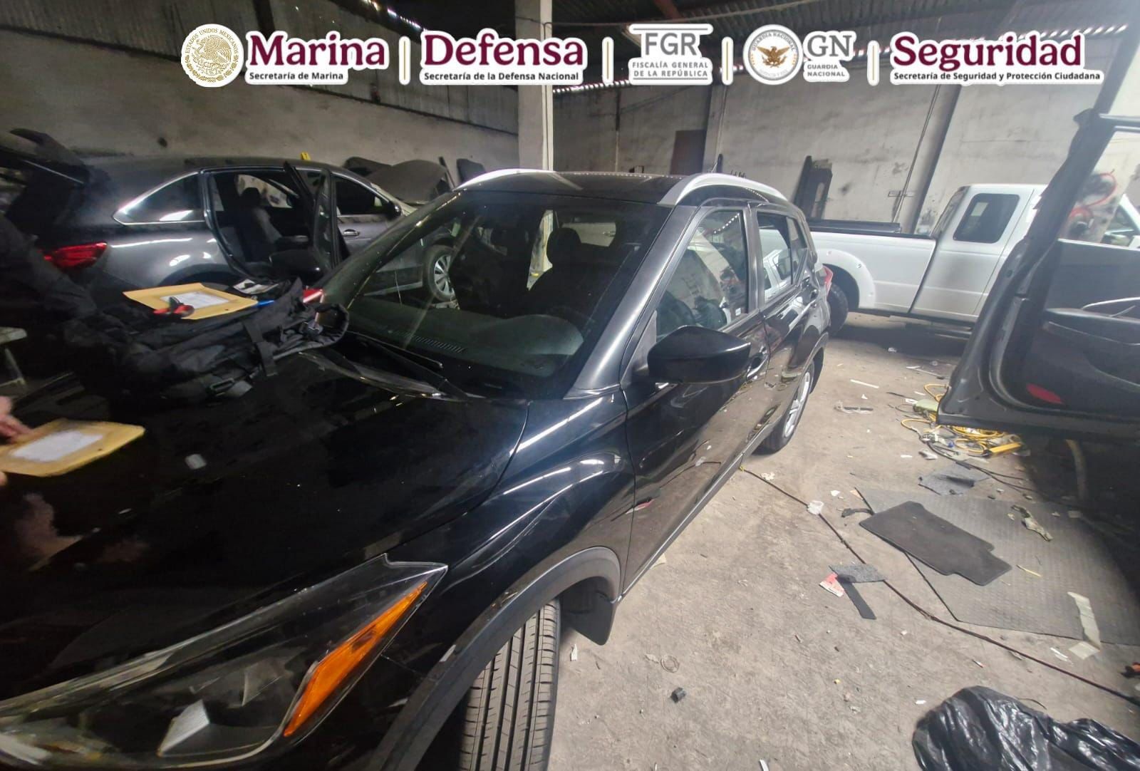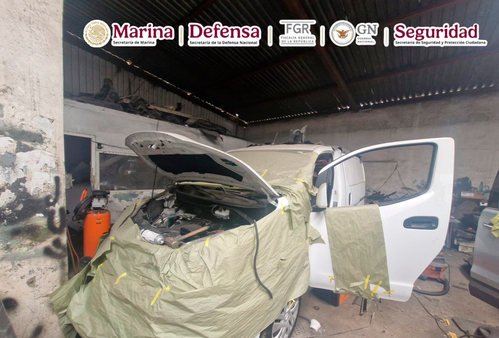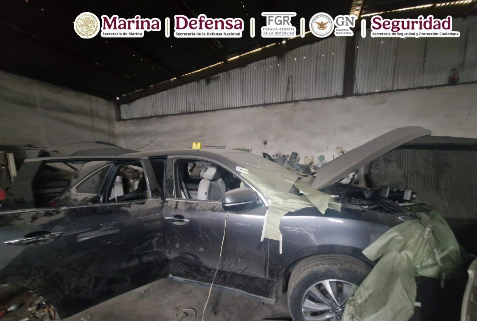 • En el inmueble fueron localizados 10 vehículos modificados para el transporte de material ilícito