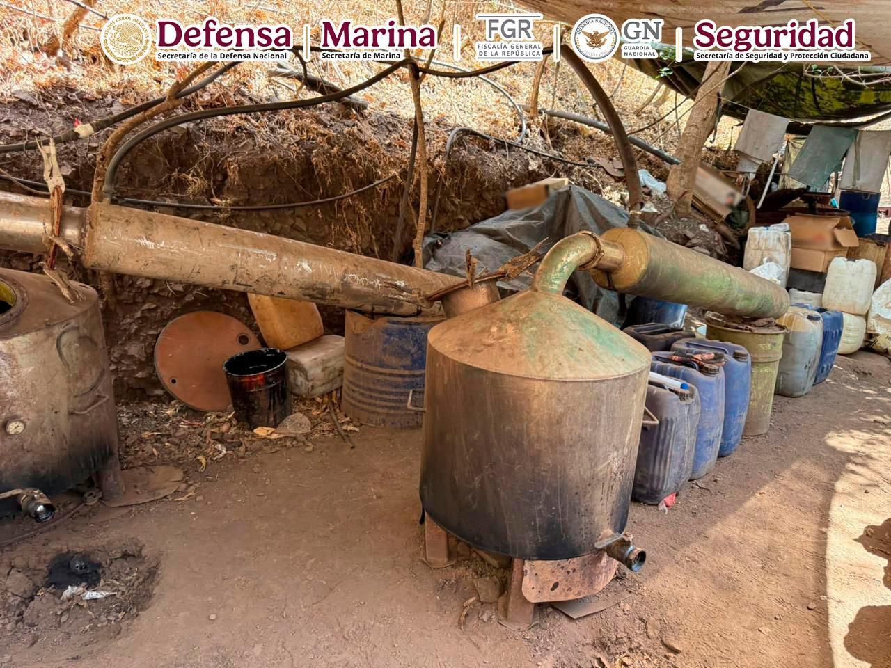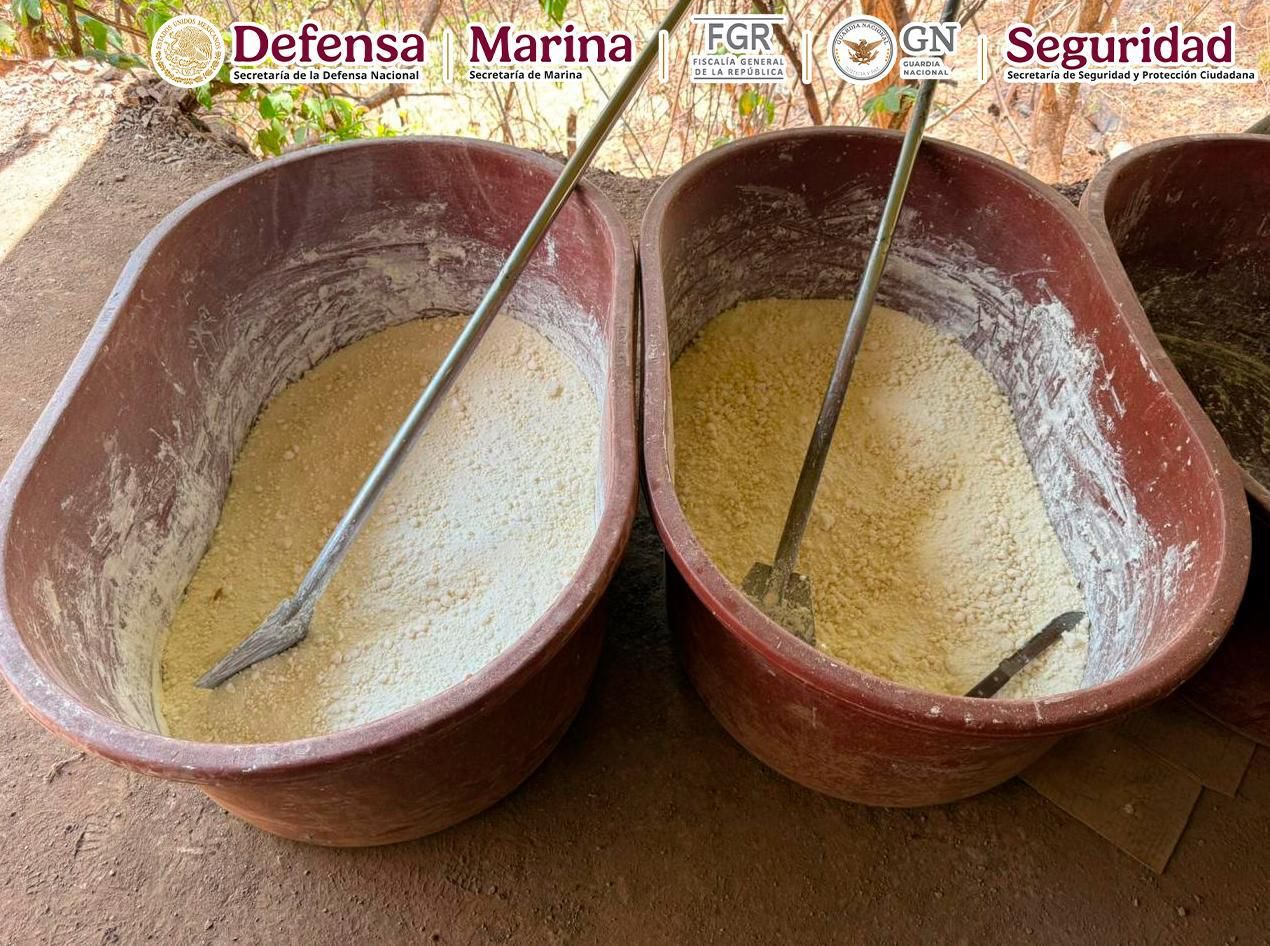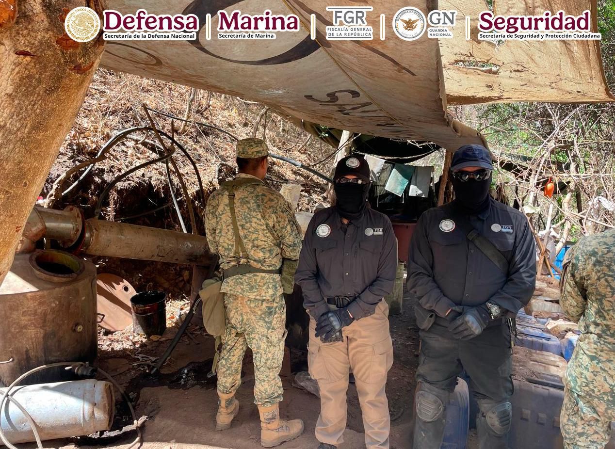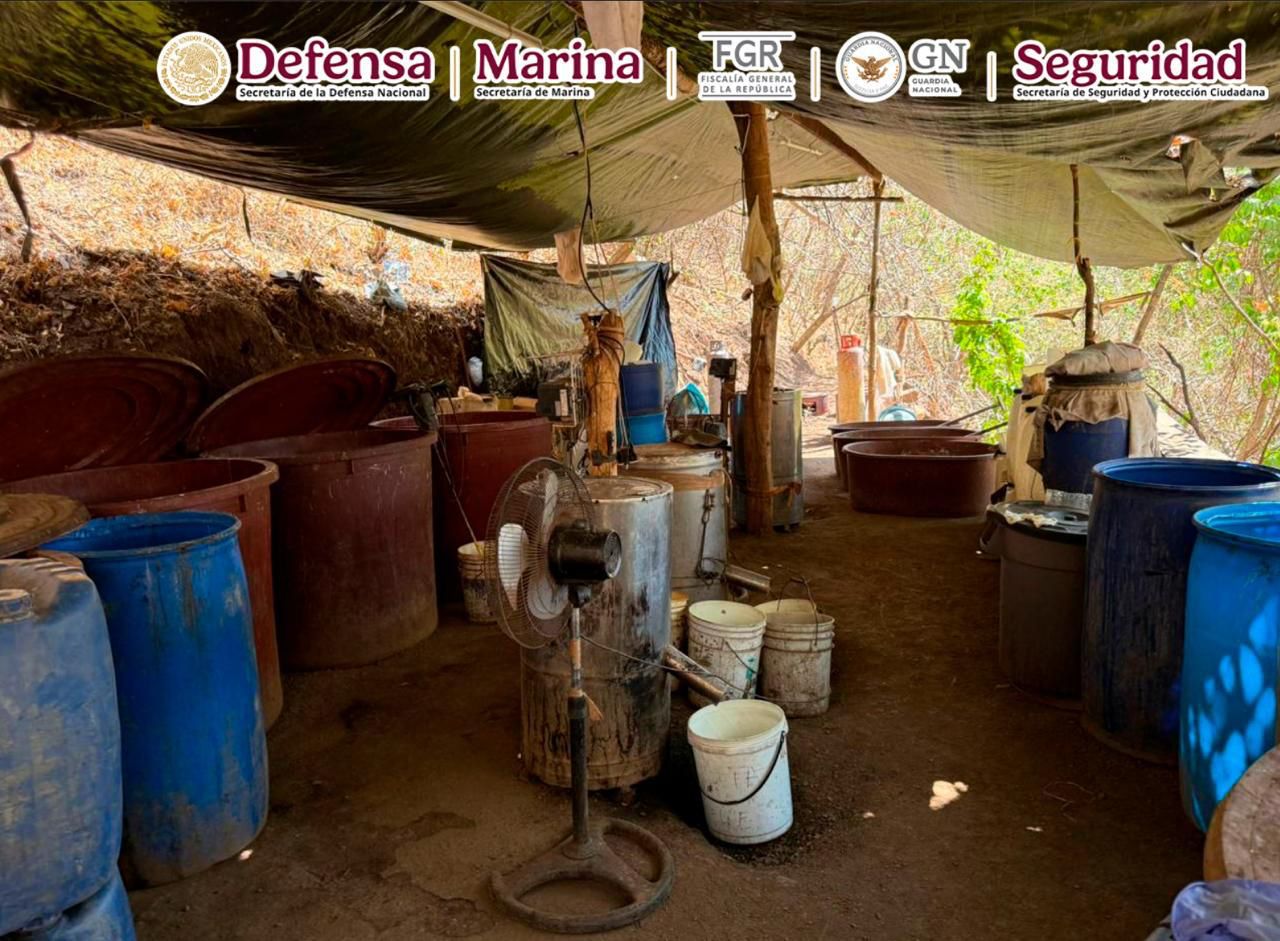 En Durango, en una acción liderada por elementos de la Agencia de Investigación Criminal (AIC) de la Fiscalía General de la República (FGR) y la Secretaría de la Defensa Nacional (Defensa), en coordinación con Secretaría de Marina (Semar), Guardia Nacional (GN) y Secretaría de Seguridad y Protección Ciudadana (SSPC), se aseguró un predio que funcionaba como laboratorio clandestino y contaba con una pista para aeronaves.