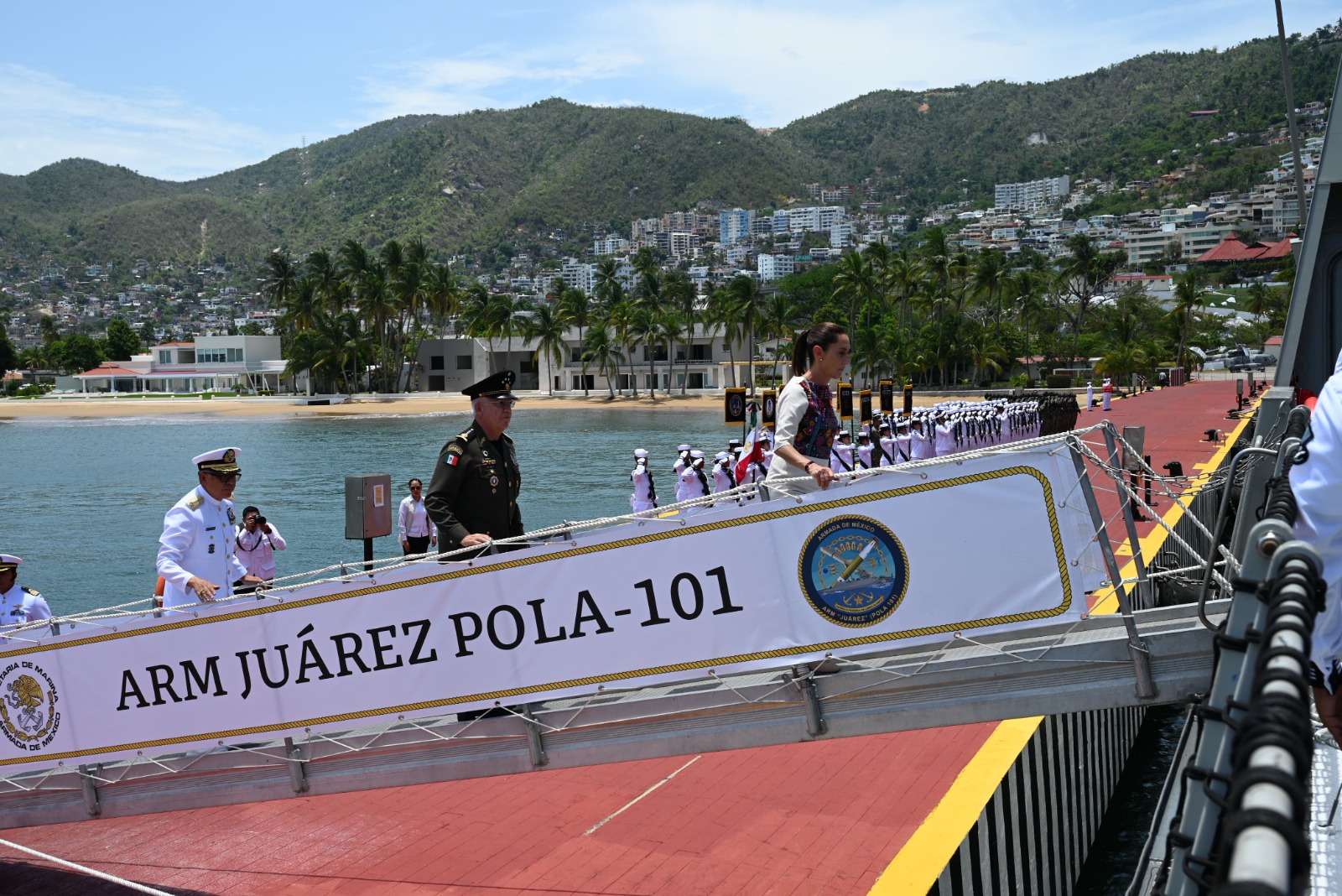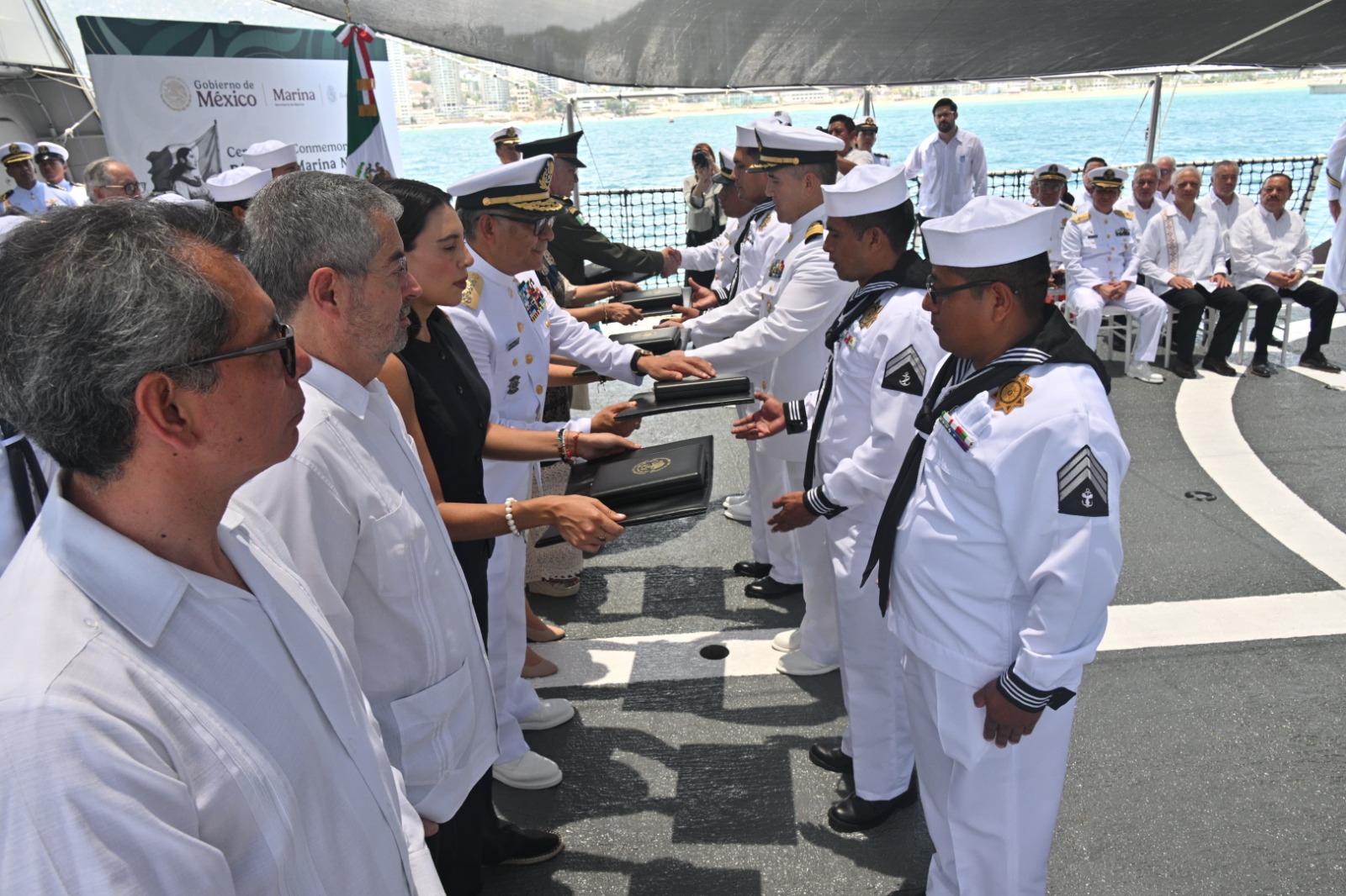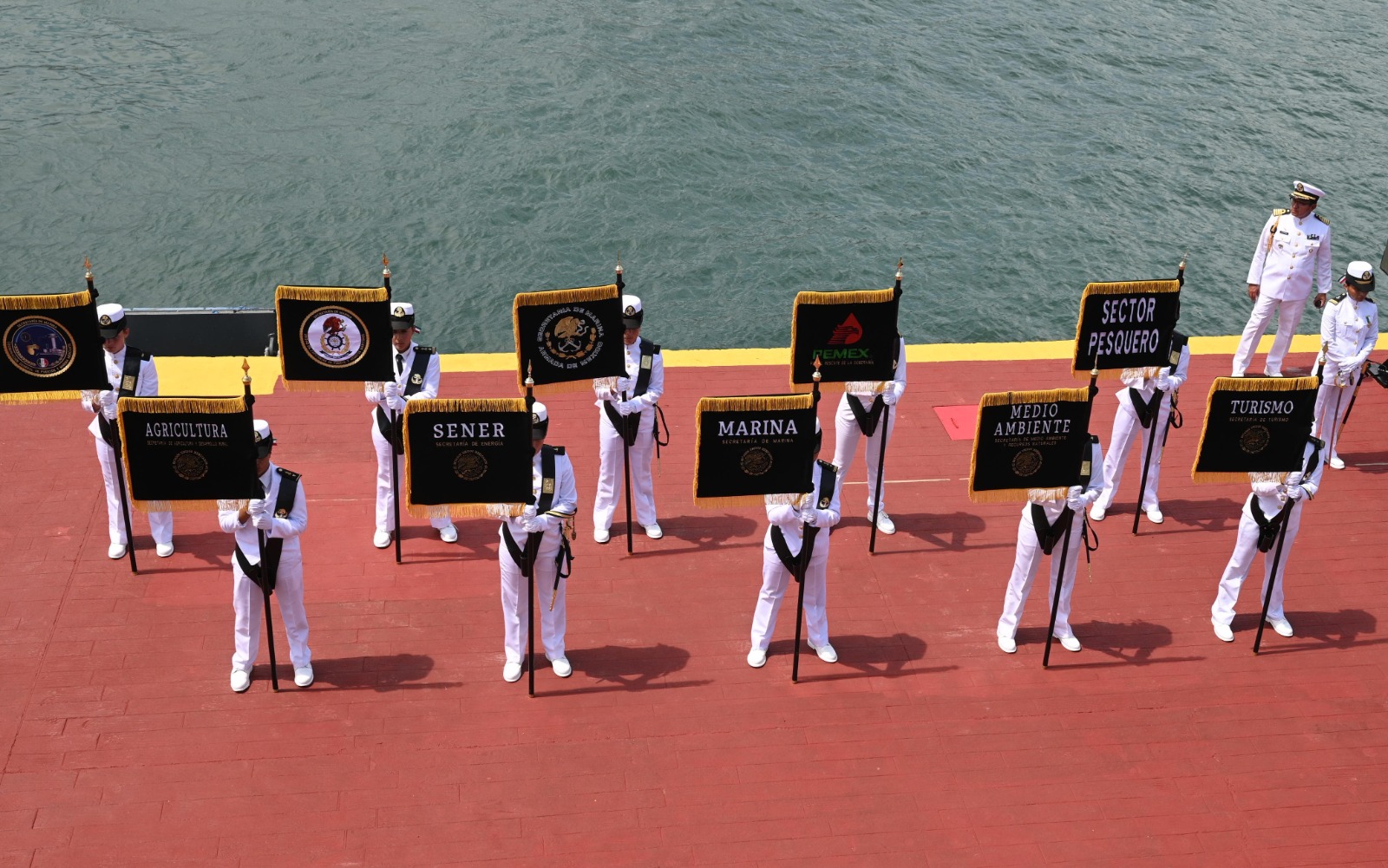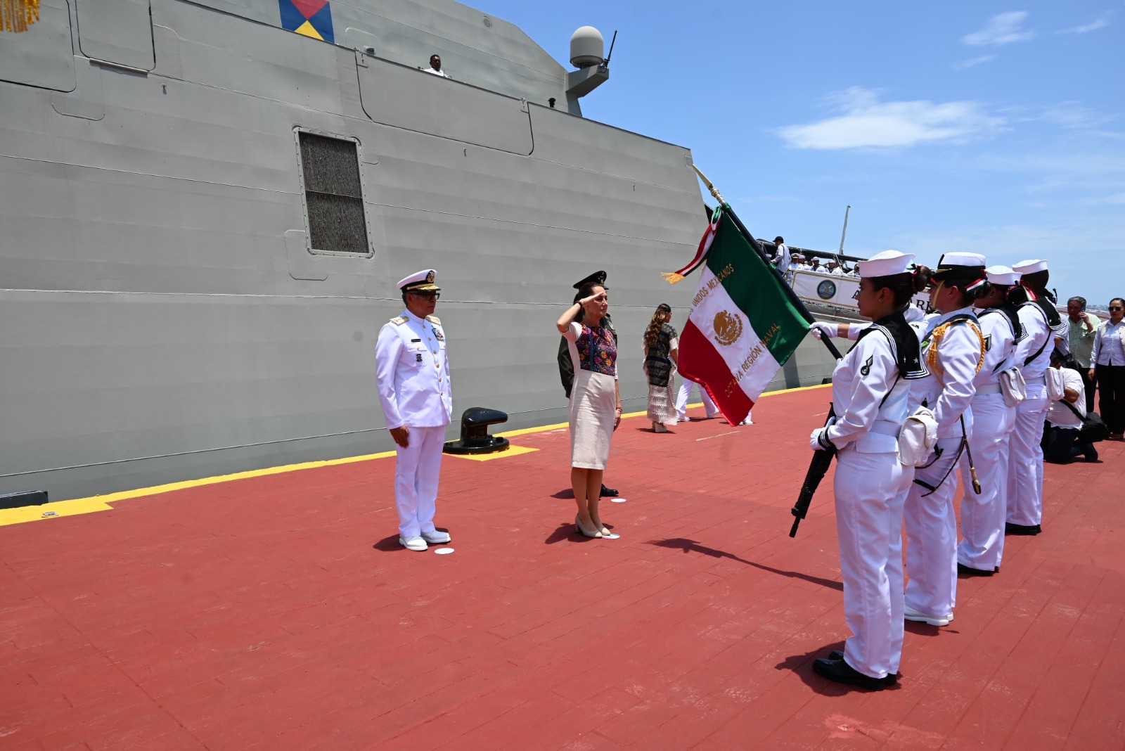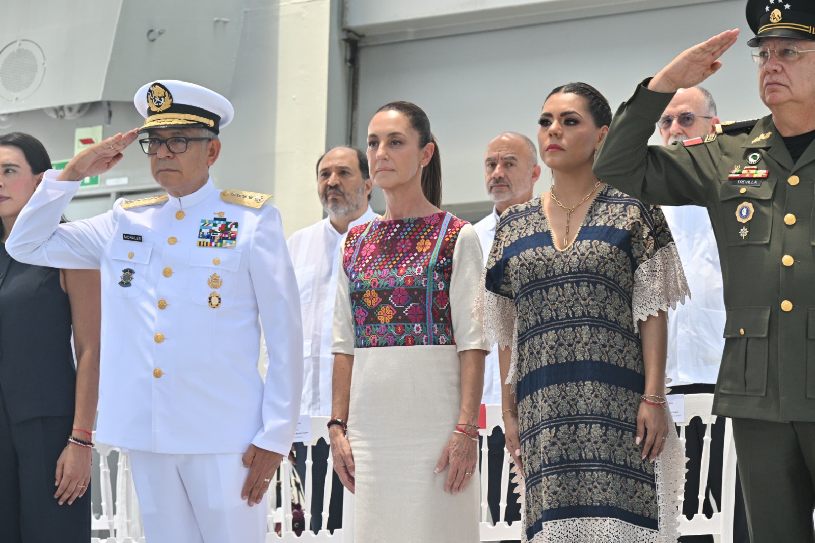 Citado evento fue presidido por la Presidenta de los Estados Unidos Mexicanos y Comandanta Suprema de las Fuerzas Armadas, quien estuvo acompañada por el Almirante Secretario de Marina y Alto Mando de la Armada de México, el General Secretario de la Defensa Nacional, así como de autoridades civiles, navales y militares.