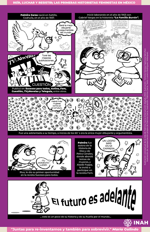 En el marco del Día Internacional de la Eliminación de la Violencia contra la Mujer, el 24 de noviembre de 2025 se inaugurará la exposición Reír, luchar y resistir: las primeras historietas feministas en México, en la Escuela Nacional de Formación Judicial (ENFJ), que recupera las figuras de Palmira Garza, Rosa María Roffiel y Ana Barreto, precursoras en la narración gráfica, como medio para transmitir mensajes de lucha e inconformidad.