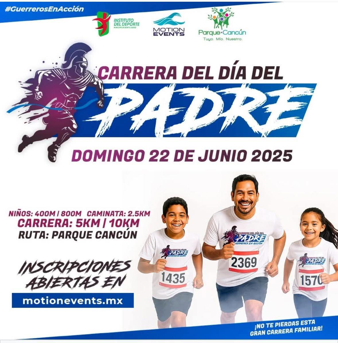 CANCÚN, Q. ROO a 11 de junio.- Dentro del extenso calendario de carreras atléticas del 2025 y al haber llegado exactamente la mitad del año, destaca la Carrera del Día del Padre, la cual se volverá a llevar a cabo tras algún tiempo de ausencia, por lo que esta mañana fue presentada de forma oficial, por Armando Macías, director general de MotionEvents, organizadora de esta competencia, misma que se celebrará el domingo 22 de junio a partir de las 6:30 de la mañana en el Parque Cancún.