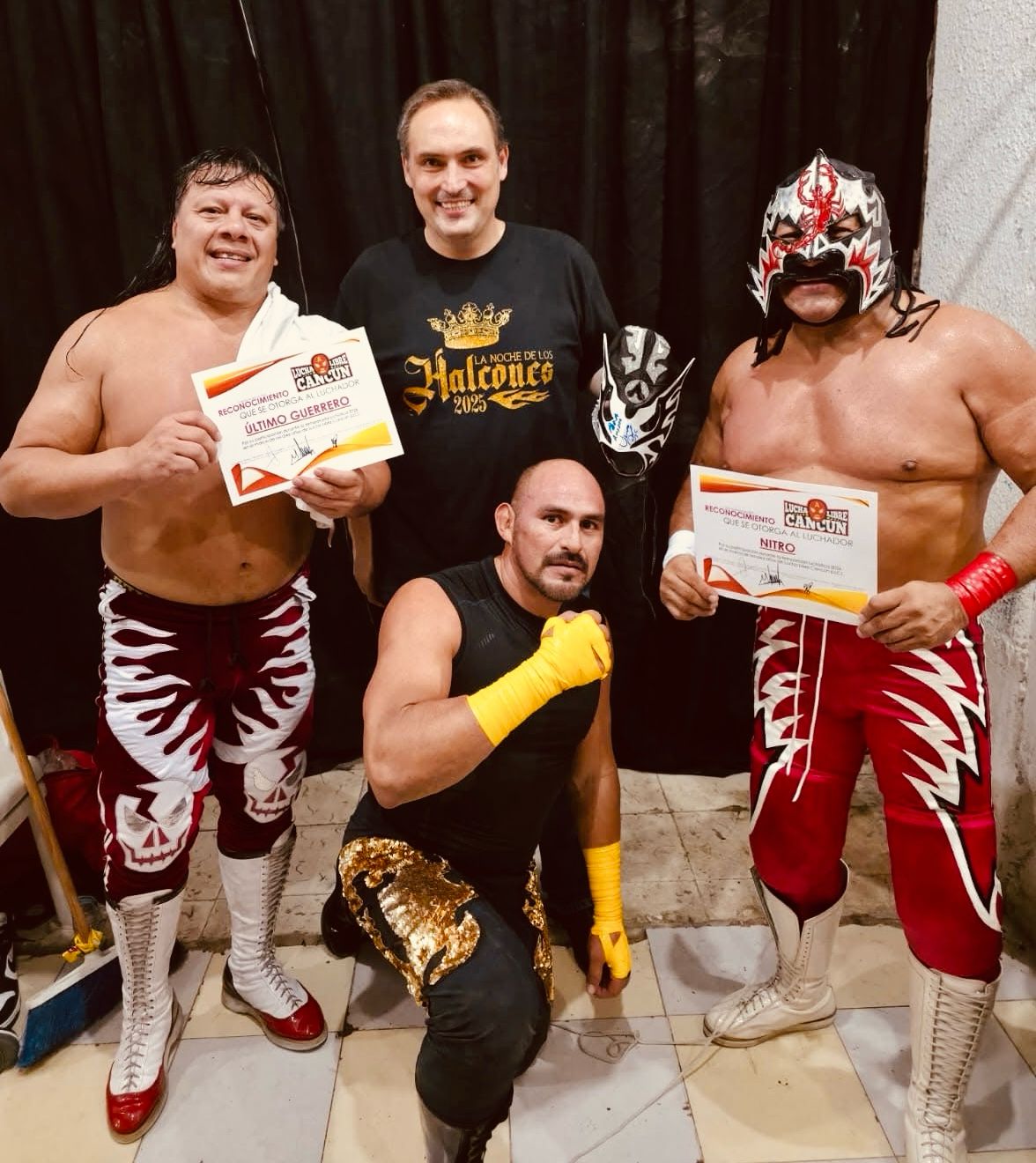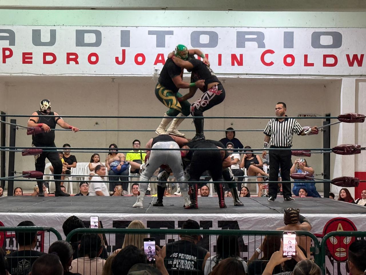 CANCÚN, Q. ROO a 15 de diciembre.- La culminación del año en el que la promotora Lucha Libre Cancún (LLC) celebró su X Aniversario, se dio con una cartelera denominada -Cierre de Año de Otro Nivel- en la Arena “Colonos”, y vaya si lo fue, toda vez que los asistentes disfrutaron de cuatro luchas en las que participaron 24 luchadores, incluyendo en la contienda estelar a las estrellas del Consejo Mundial de Lucha Libre (CMLL), Último Guerrero y Nitro.