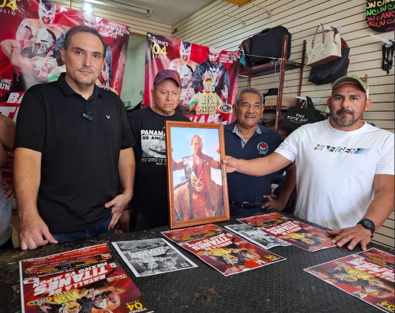 Este evento fue presentado la mañana de este martes en la reparadora de calzado “El Corsario”, ubicada en el Mercado 28, en la que estuvieron presentes Amador Gutiérrez Guigui, director de LLC; junto a Florentino López Carrillo, titular de la Honorable Comisión de Boxeo, Lucha Libre y Artes Marciales Mixtas del municipio de Benito; así como los luchadores Corsario Jr. y Axtar; sin dejar de lado a Andrés y Jesús Ortiz, hijo y nieto respectivamente de Santiago Ortiz Quintal (QEPD).