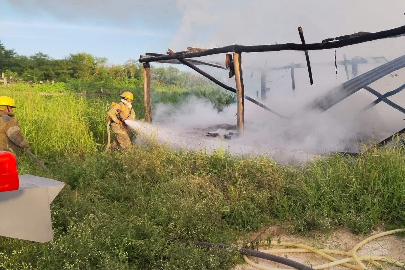 Vecinos alertaron a las autoridades al percatarse de las llamas en el rancho Santa Cecilia, ubicado sobre la carretera Izamal-Dzilam González, que fueron sofocadas por elementos del Cuerpo de Bomberos de la Secretaría de Seguridad Pública (SSP).