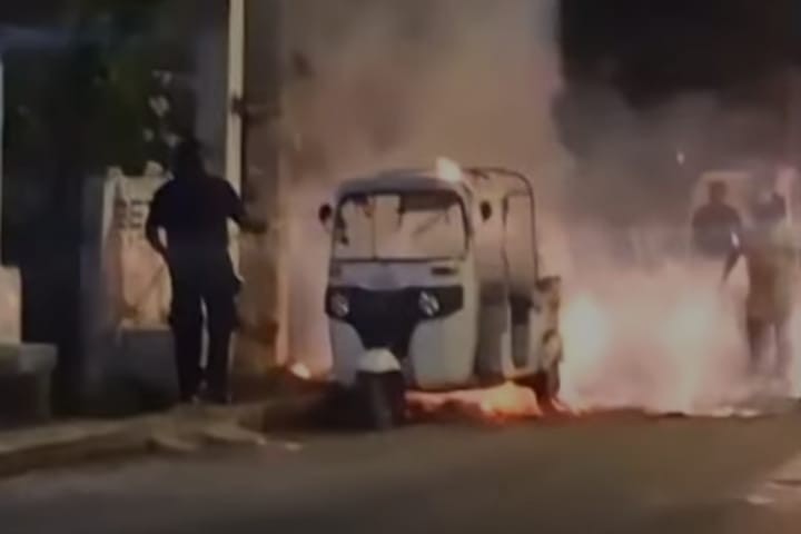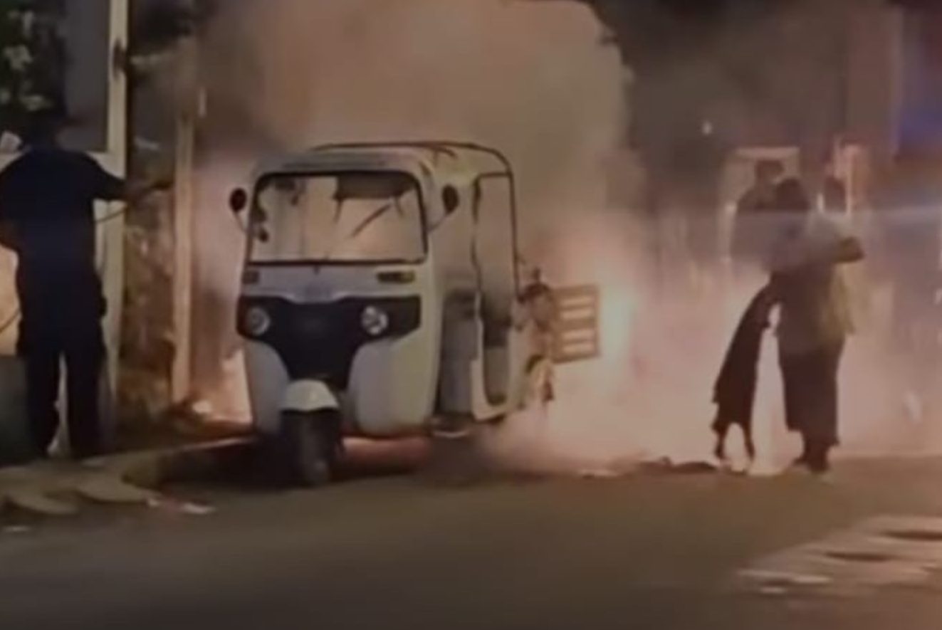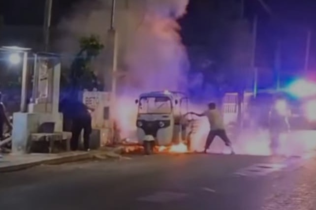 TICUL, YUC.- 10 de septiembre.- Un mototaxi se quemó mientras su propietario le hacía labores de mantenimiento, frente al parque del “Zapatito” en el municipio de Ticul, y si bien nadie salió lastimado, los daños fueron casi totales.