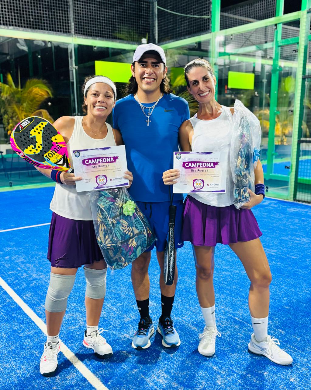 CANCÚN, Q. ROO a 22 de junio.- El Padel sigue creciendo a pasos agigantados en cuanto al número de practicantes se refiere en Cancún, y prueba de ello fue el recientemente concluido Torneo Femenil de Cuarta Fuerza, organizado por “Prime Padel Arena Cancún”, en el cual participaron 14 parejas (28 jugadoras), y donde al final la dupla ganadora resultó ser la de Daniela Solorzono y Gabriela Vanesa, quienes vencieron en -Muerte Súbita- tiebreak a la dupla de Zaida Magallanes y Marycarmen Hernández.