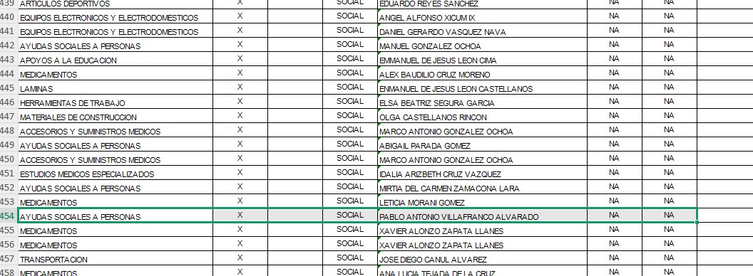 De acuerdo con el documento titulado “Montos Pagados en Ayudas y Subsidios – 4to Trimestre 2018”, publicado en el portal de transparencia del Poder Legislativo de la entidad, Villafranco Alvarado recibió apoyo en la categoría de “Ayuda sociales a personas”, clasificado como ayuda social.