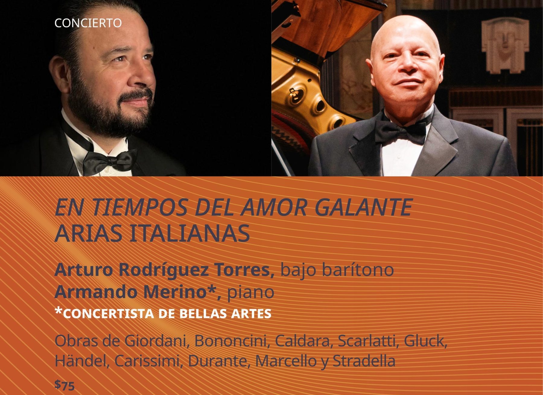 El Instituto Nacional de Bellas Artes y Literatura (INBAL), a través de la Coordinación Nacional de Música y Ópera, presentará el concierto En tiempos del amor galante, en el que el bajo barítono Arturo Rodríguez Torres y el pianista Armando Merino unirán su talento en la Sala Manuel M. Ponce del Palacio de Bellas Artes.