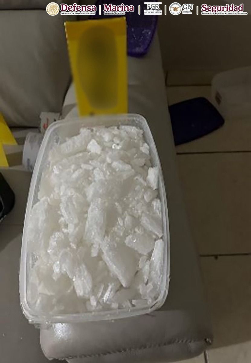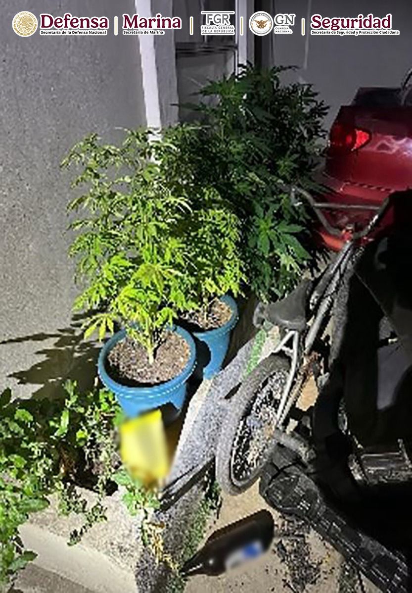 Con esto, se desplegó un dispositivo de seguridad y se intervino una casa donde fueron detenidas dos mujeres y cuatro hombres, se aseguraron dos armas cortas, 35 cartuchos, seis plantas de marihuana, un kilo de metanfetamina, mil pastillas de fentanilo, así como dispositivos GPS y un vehículo.
