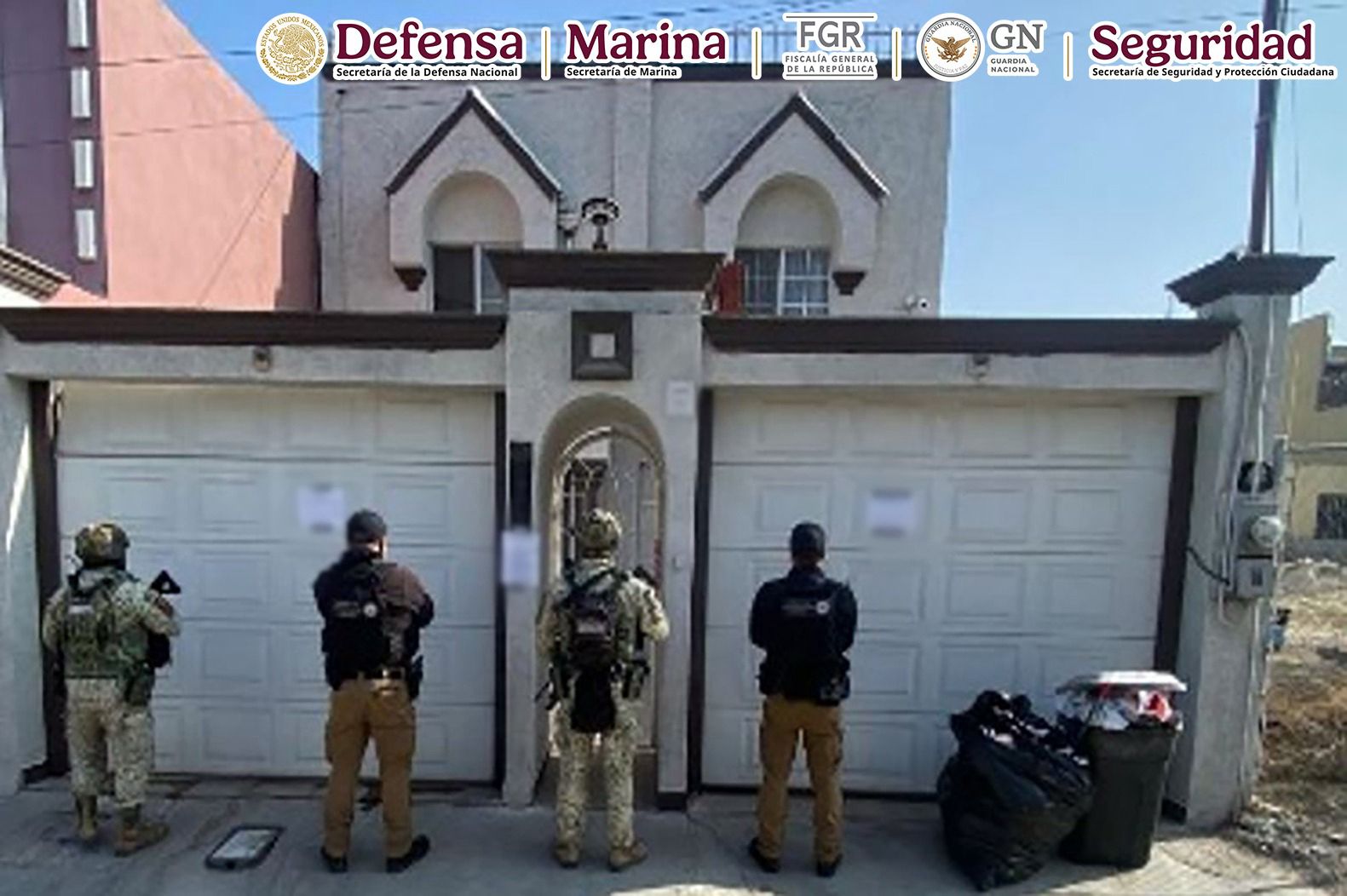 En seguimiento a la estrategia del reforzamiento de seguridad en Baja California para detener a generadores de violencia, elementos de la Secretaría de la Defensa Nacional (Defensa), Secretaría de Marina (Semar), Fiscalía General de la República (FGR), Guardia Nacional (GN) y Secretaría de Seguridad y Protección Ciudadana (SSPC) ejecutaron una orden de cateo, donde detuvieron a dos mujeres y cuatro hombres con armas, drogas y vehículos.