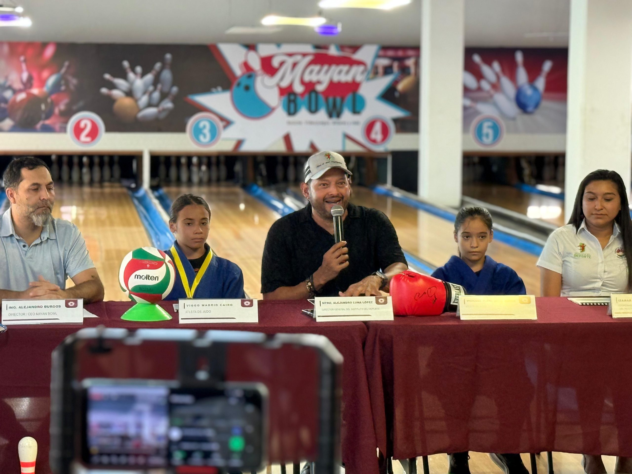 En el evento estuvieron presentes también Izamar Matías Bravata, Coordinadora de Deporte Estudiantil del Instituto del Deporte; Alejandro Burgos, CEO de Mayan Bowl; así como los atletas invitados Viggo Madrid y Elena Ortiz.