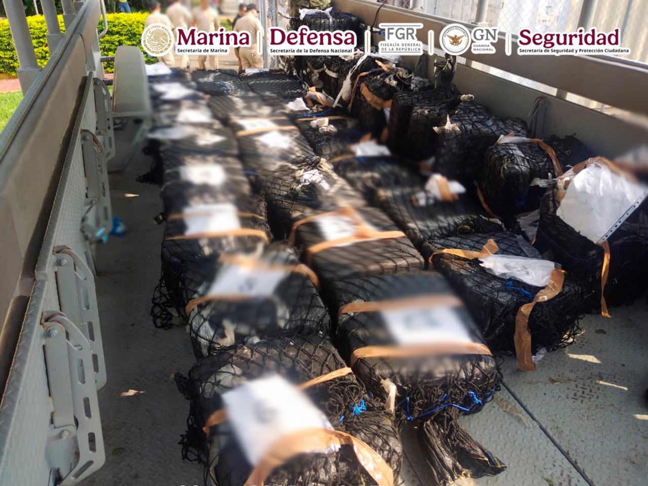En una operación marítima encabezada por elementos de la Secretaría de Marina (Semar) a través de la Armada de México en funciones de Guardia Costera, en coordinación con la Secretaría de la Defensa Nacional (Defensa), Fiscalía General de la República (FGR), Guardia Nacional (GN) y Secretaría de Seguridad y Protección Ciudadana (SSPC), se aseguraron 87 bultos con aproximadamente 2.5 toneladas de posible cocaína en las costas de Michoacán.