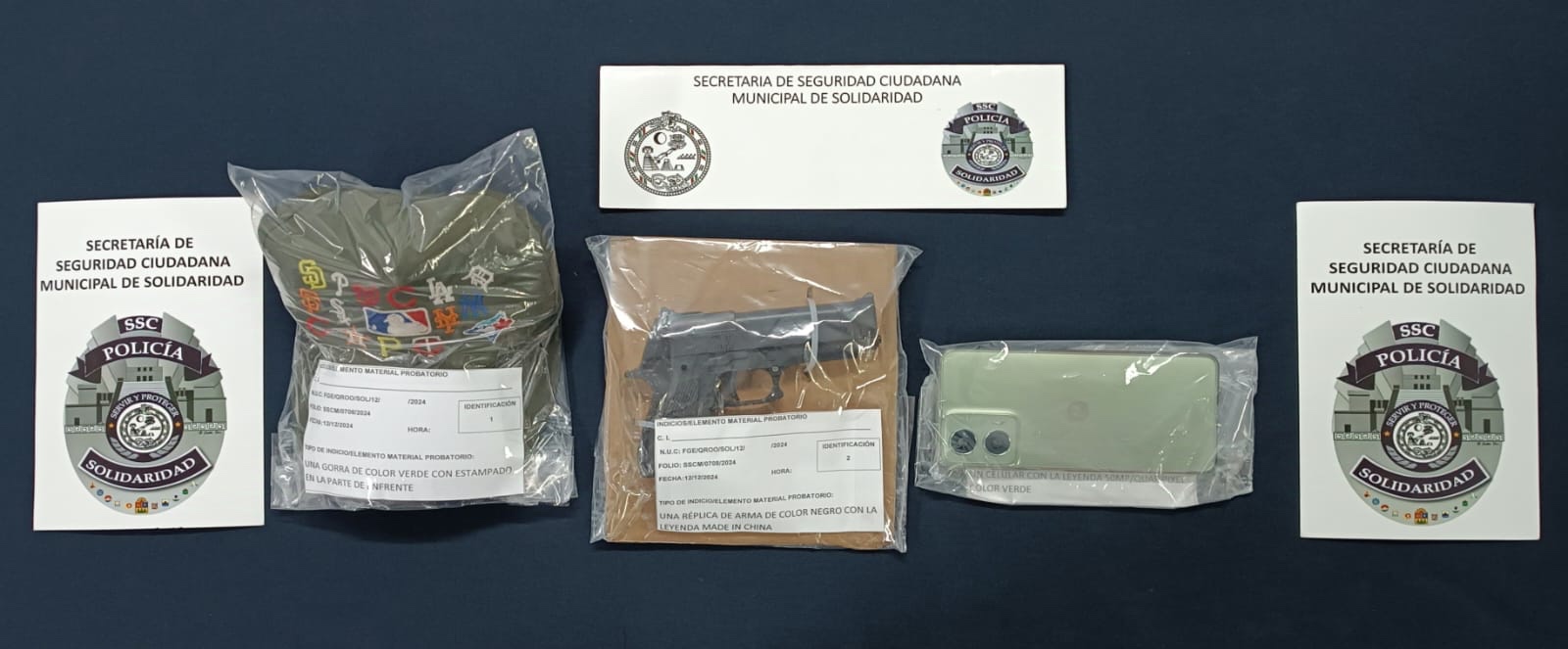 En un primer hecho la Secretaría de Seguridad Ciudadana Municipal (SSCM) de Solidaridad detuvo a una persona del sexo masculino por el presunto delito de robo a comercio con violencia y se le aseguró una réplica de arma de fuego, y un vehículo tipo Van en el que se transportaba, durante una intervención policial en la colonia Luis Donaldo Colosio.