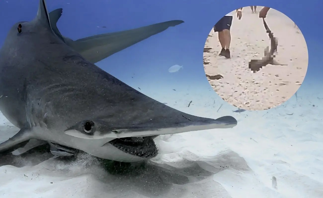 👉 En la playa de #Progreso, en #Yucatán, un hombre sacó de la cola a una cría de tiburón martillo, siendo esta una especie está en peligro de extinción.@PROFEPA_Mx… pic.twitter.com/TwodhztmuS