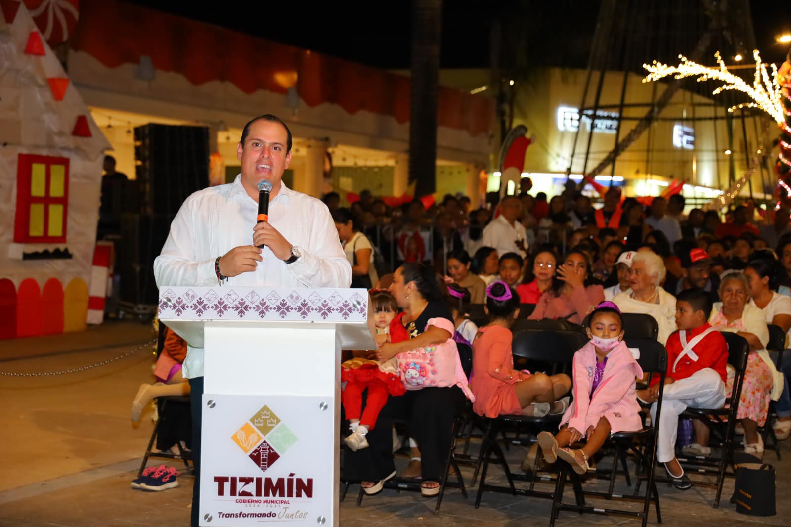 El parque principal de Tizimín se llenó de familias y habitantes que se reunieron para disfrutar de este festivo acontecimiento. La emoción y el espíritu navideño estuvieron presentes en cada rincón del lugar.