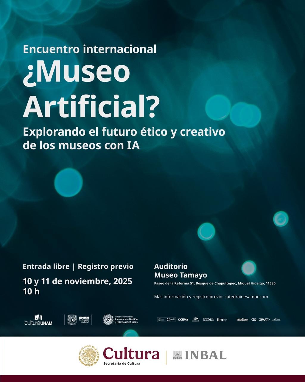 El Instituto Nacional de Bellas Artes y Literatura (INBAL), la Cátedra Internacional Inés Amor en Gestión y Políticas Culturales y Universum, Museo de las Ciencias de la UNAM, en colaboración con el Consejo Internacional de Museos (ICOM México) y el Instituto de Liderazgo en Museos e Instituciones Culturales (ILM A.C.), convocan al Encuentro Internacional ¿Museo Artificial?: Explorando el futuro ético y creativo de los museos con IA, que se consolida como un espacio interdisciplinario para imaginar el futuro del museo en diálogo con la tecnología.