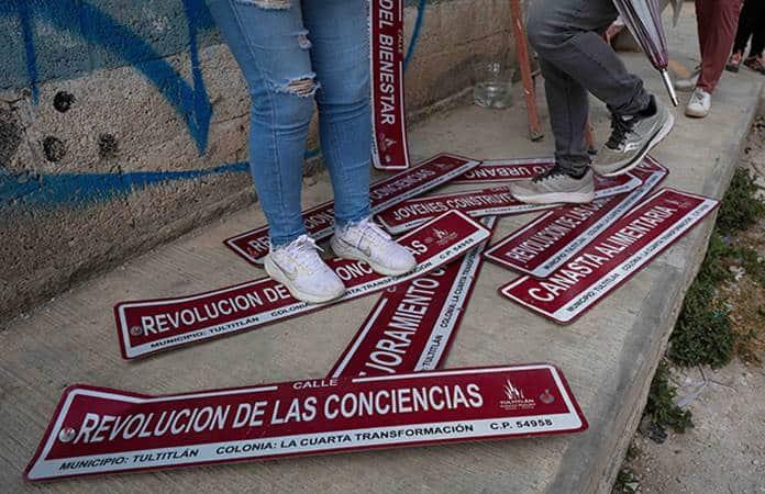 Vecinos de la colonia Cuarta Transformación, antes conocida como Finesa, se manifestaron frente al Palacio de Gobierno del Estado de México, en Toluca. Durante la protesta, las y los inconformes portaron pancartas en contra del cambio de nombre e incluso arrojaron al piso las nomenclaturas de las calles recién nombradas con nombres de Programas del Bienestar y otros.