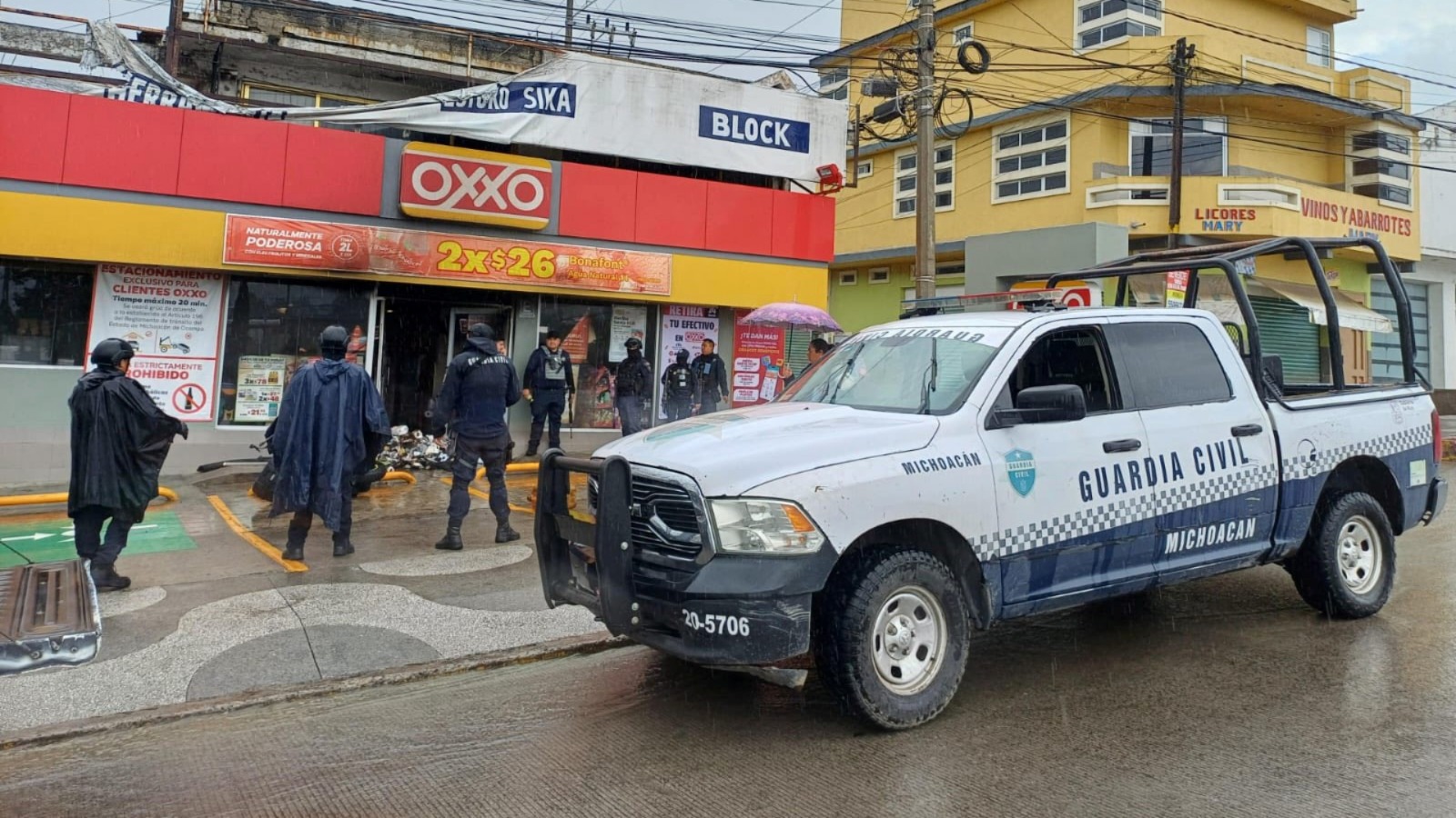 Un grupo de sujetos armados que utilizó un auto compacto de color blanco prendió fuego a una tienda de la cadena Oxxo, mientras que otras células obligaron a choferes del transporte público a bloquear con taxis, camionetas tipo van y camiones, los accesos a Zitácuaro.