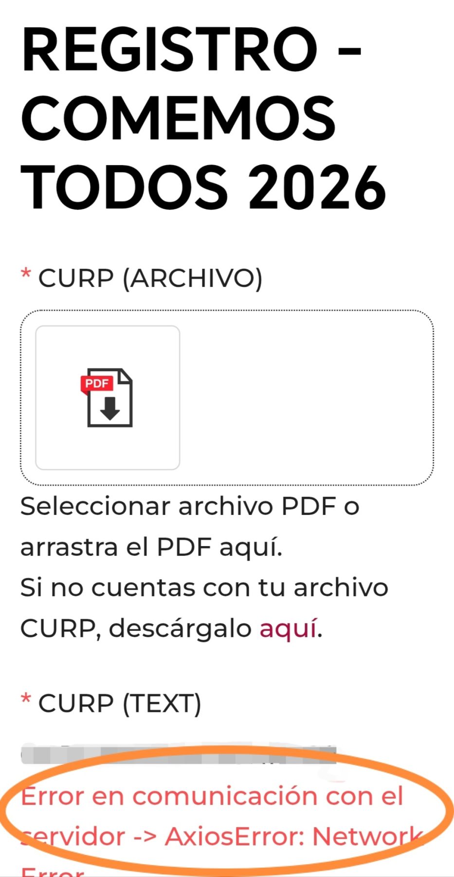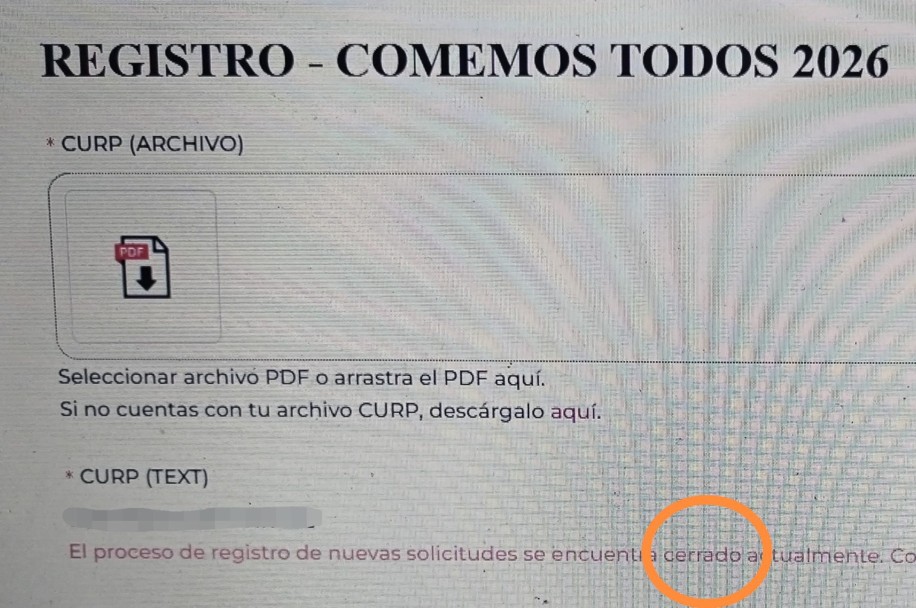 Lejos de solucionar el problema, el cambio de sitio web profundizó la decepción. Al intentar completar el registro, los usuarios se encontraron con que el sistema, tras solicitar el ingreso de la Clave Única de Registro de Población, arroja un mensaje de error que indica que el proceso para nuevas solicitudes se encuentra cerrado.