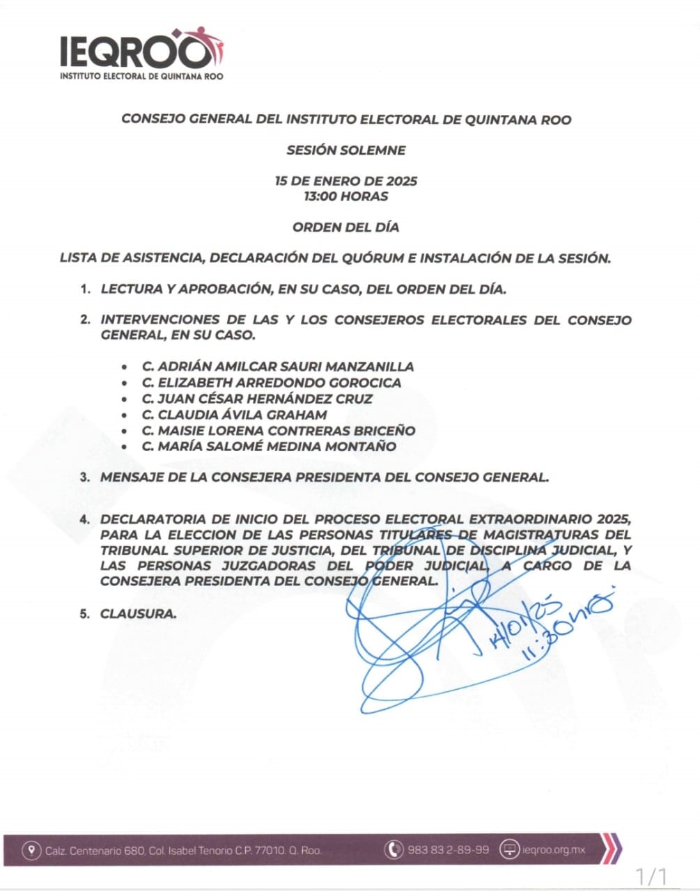 El decreto fue publicado ayer 13 de enero en el Periódico Oficial del Estado y entró en vigor este mismo martes, por lo que el Consejo General del Ieqroo realizó una sesión para analizar los aspectos generales del procedimiento electoral marcado y determinó declarar el inicio del proceso electoral este 15 de enero a las 13 horas en sesión solemne.