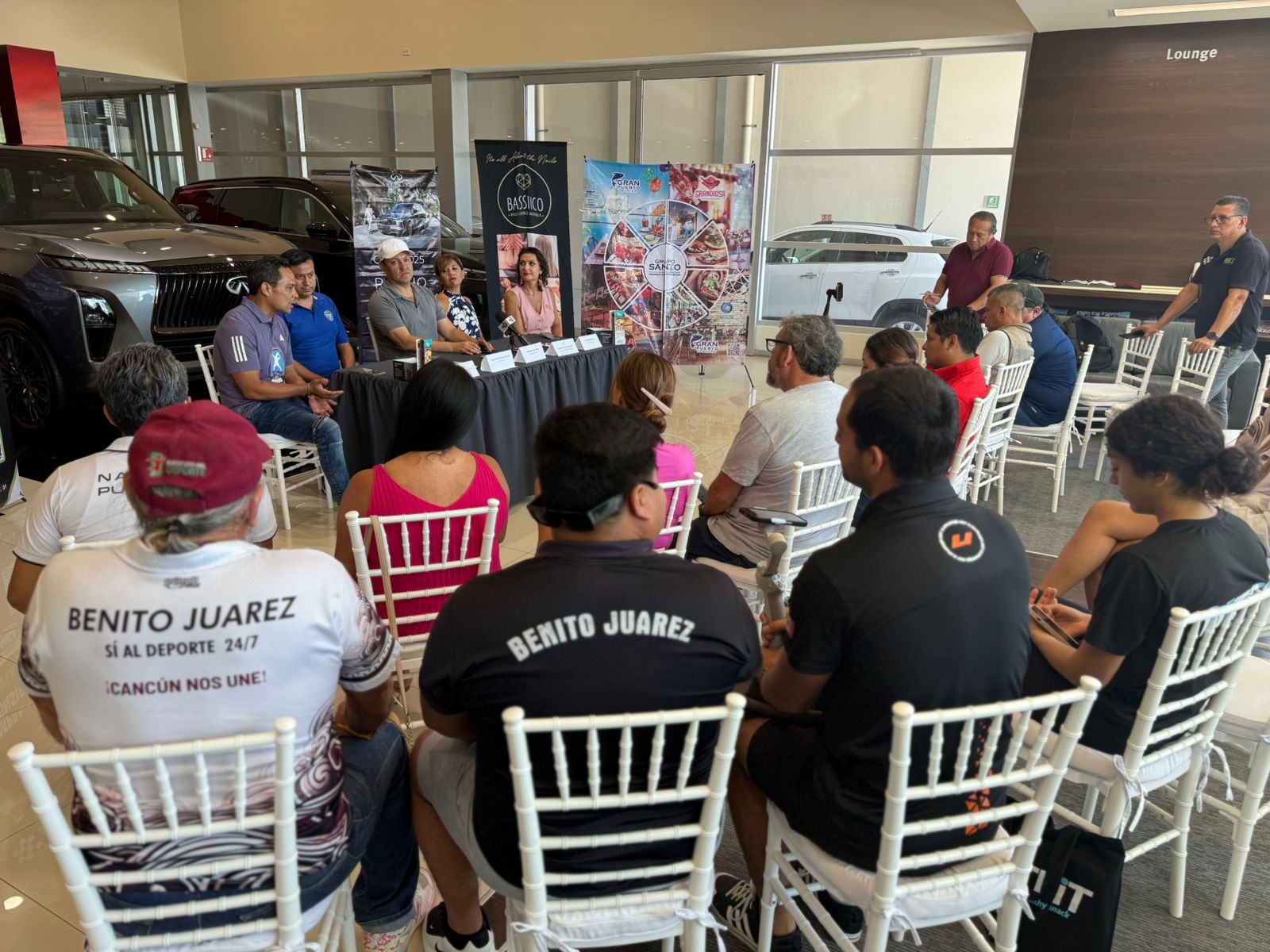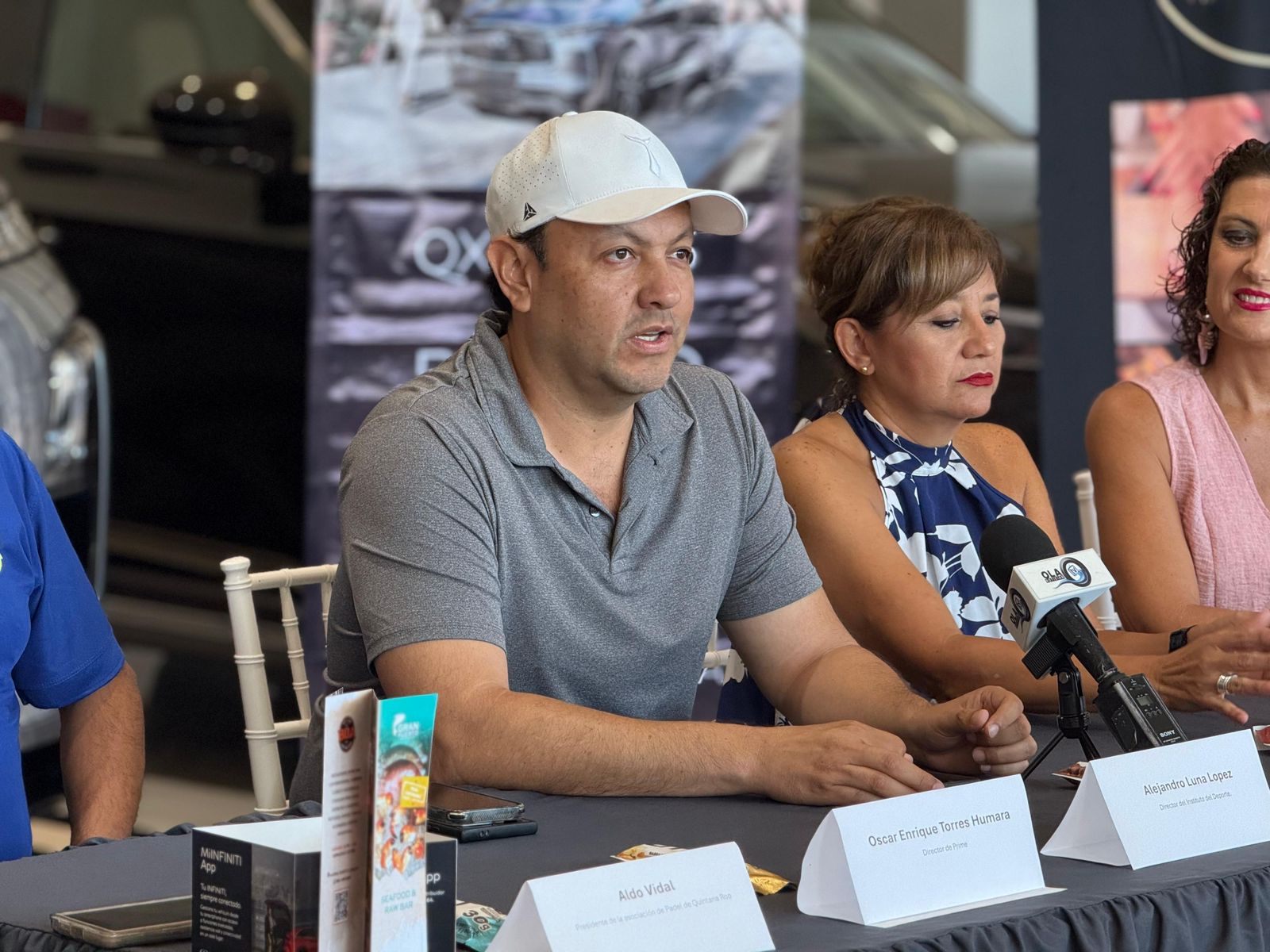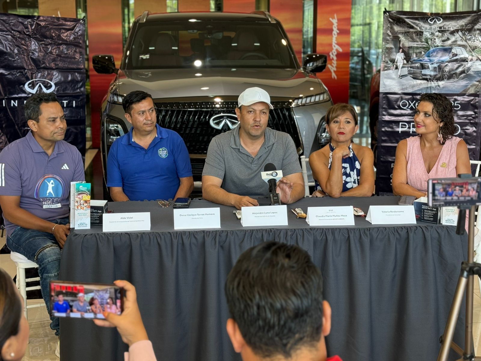 En la reunión con los medios de comunicación la agencia automotriz Infiniti Cancún, fue presidida por Raymundo Polanco, representante del Instituto Municipal del Deporte de Benito Juárez (IMDBJ), junto a Aldo Vidal, presidente de la Asociación de Pádel de Quintana Roo; Oscar Enrique Torres Humara, coordinador de Prime Pádel Arena; Valeria Rindertsma, presidenta de Amexmex; y Claudia Muñoz, Gerente de Infiniti Cancún; además de las jugadoras Fernanda Zúñiga y Yolanda Velasco.