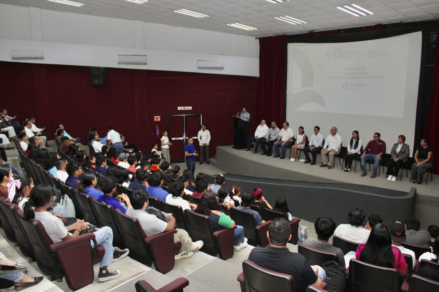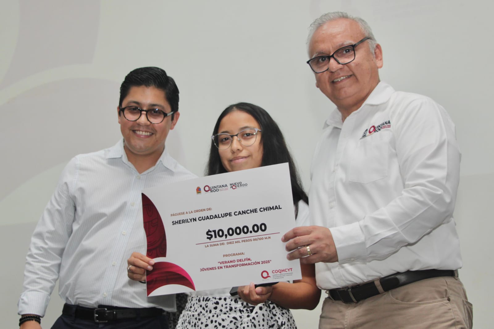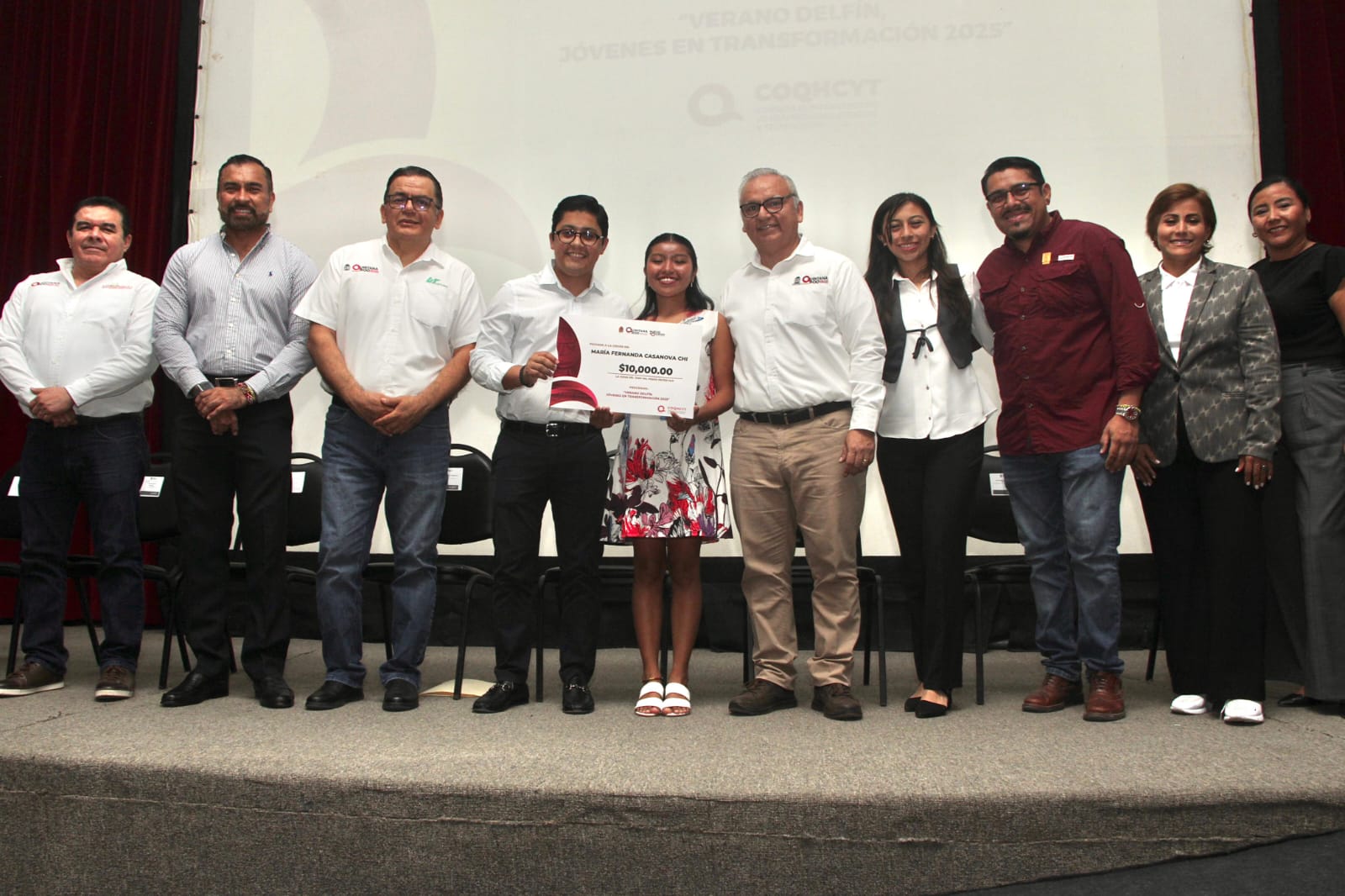 Chetumal.- El Consejo Quintanarroense de Humanidades, Ciencias y Tecnologías (COQHCYT) llevó a cabo en el planetario “Yook’ ol Kaab” de la capital del estado, la entrega de estímulos económicos a estudiantes que realizaron su estancia de investigación de siete semanas en reconocidas instituciones académicas y científicas, nacionales e internacionales, como parte del programa “Verano Delfín, Jóvenes en Transformación”.