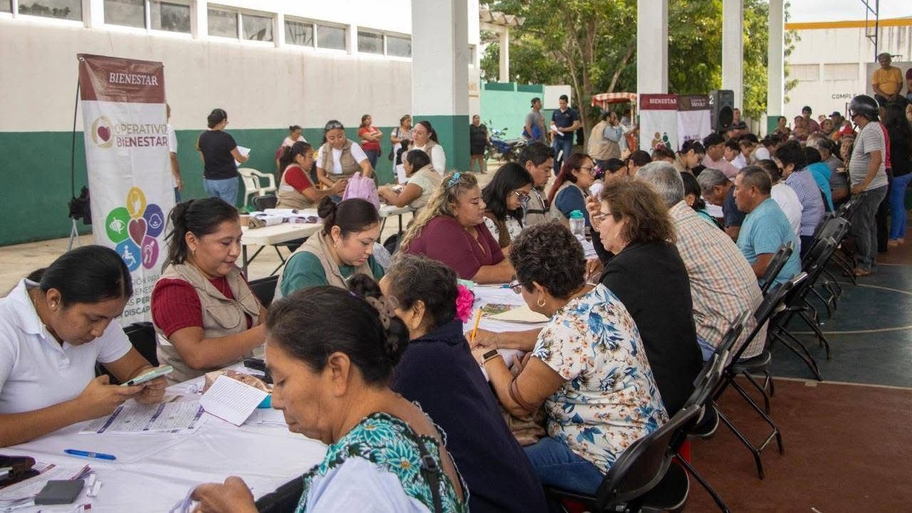 VALLADOLID, YUC. a 21 enero.- Cientos de personas acudieron hoy a las canchas de la unidad deportiva ubicadas en la colonia Fernando Novelo para recibir sus tarjetas del programa Pensión para el Bienestar de las personas adultas mayores.
