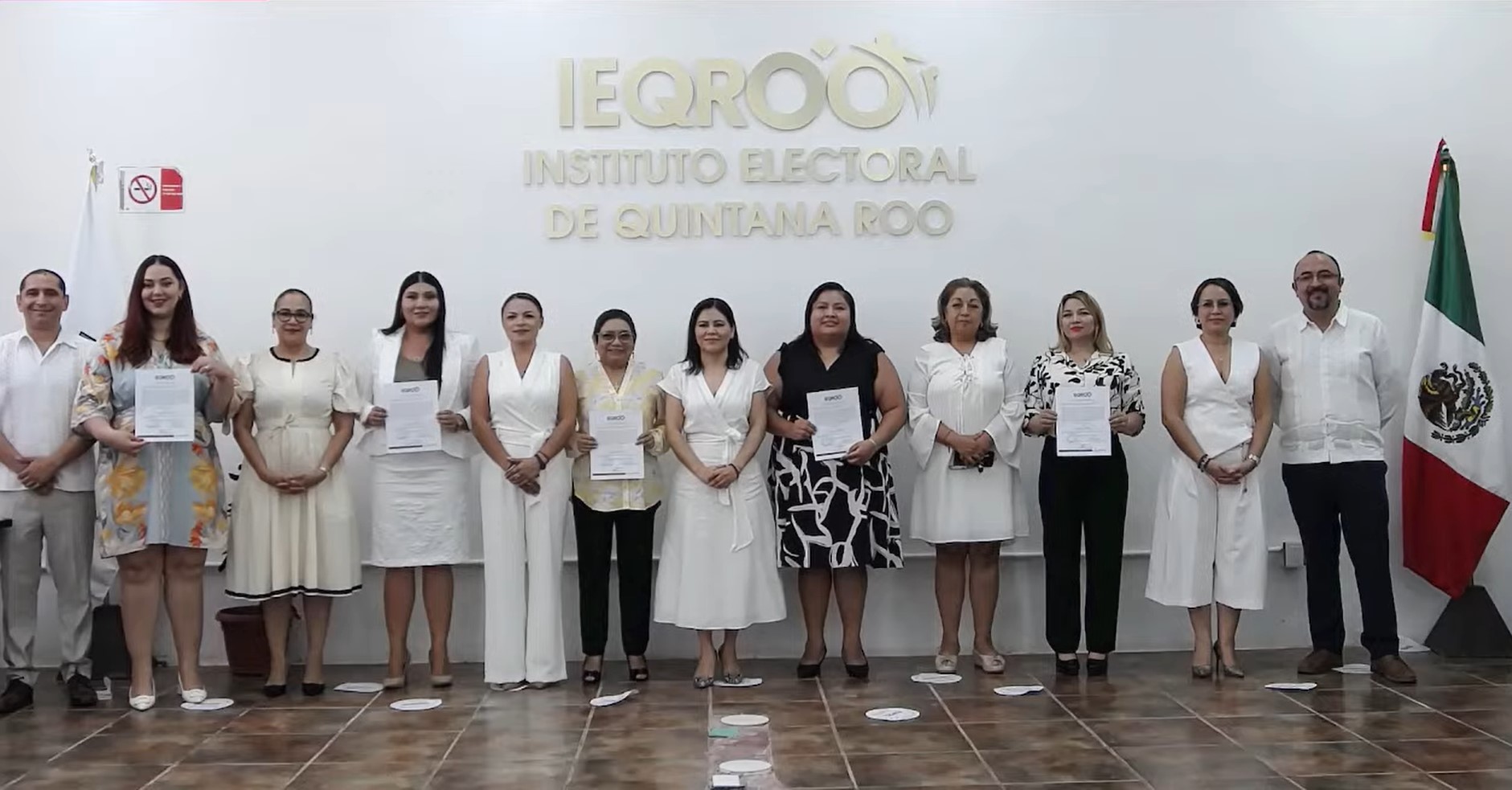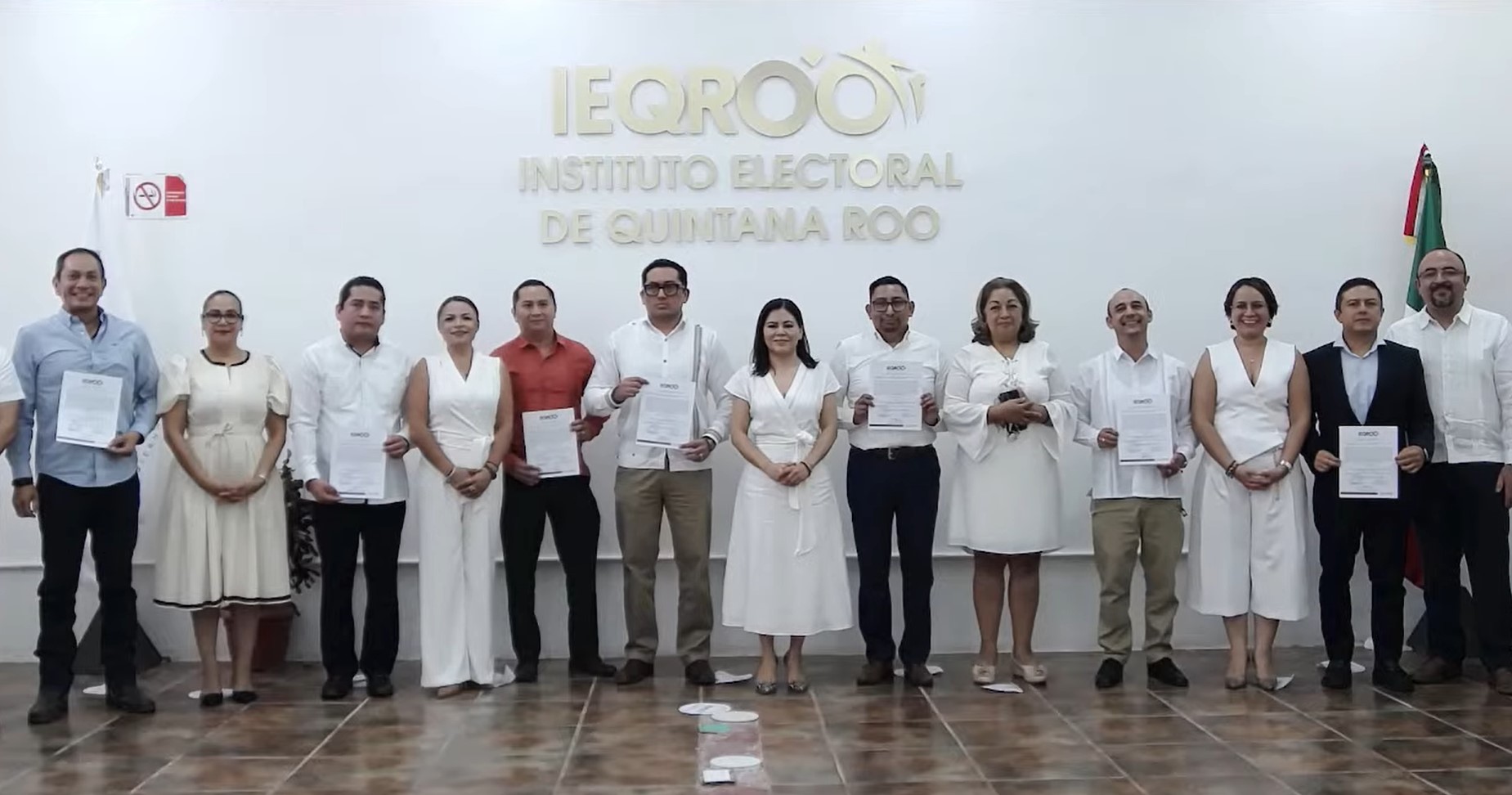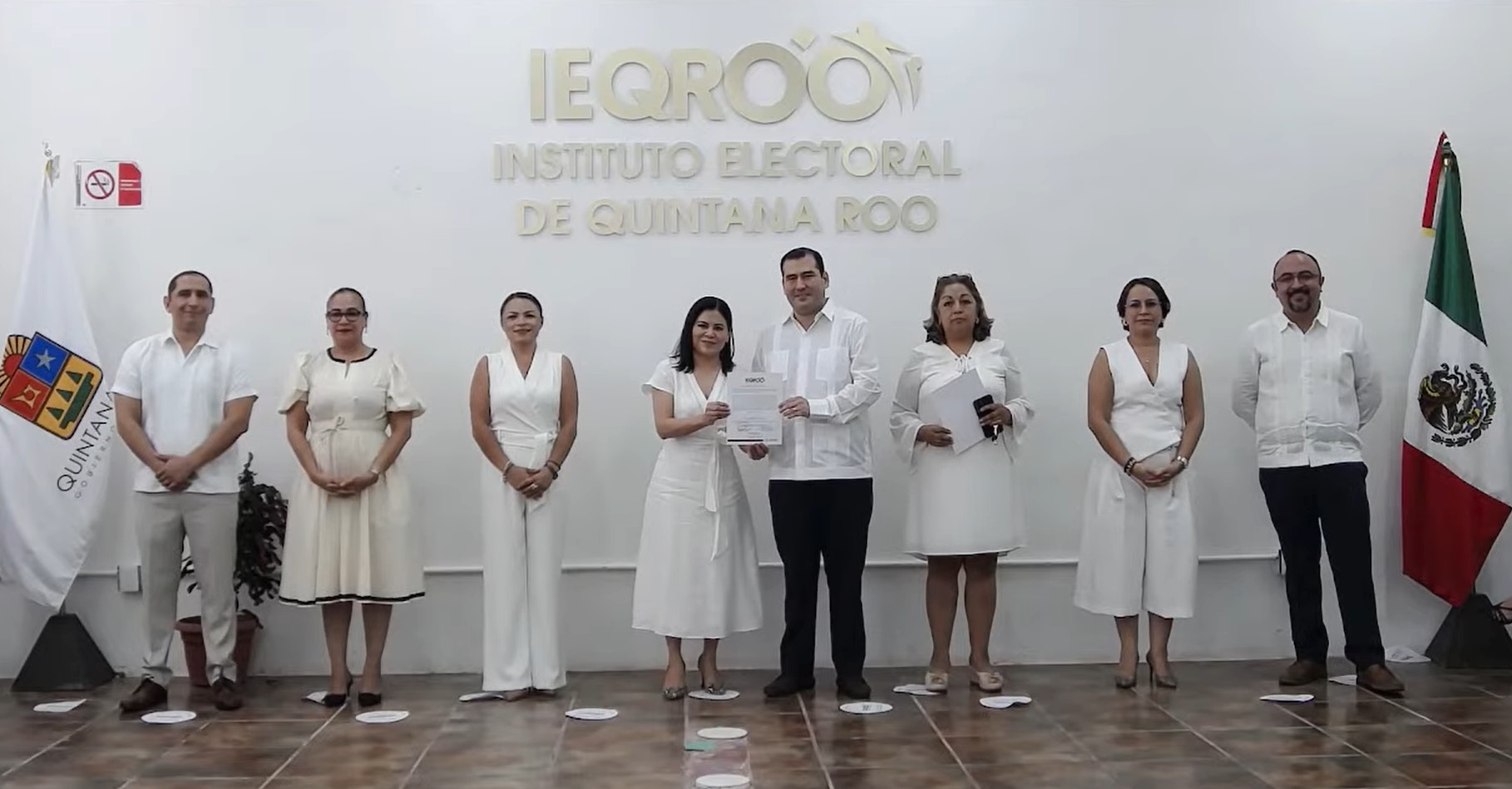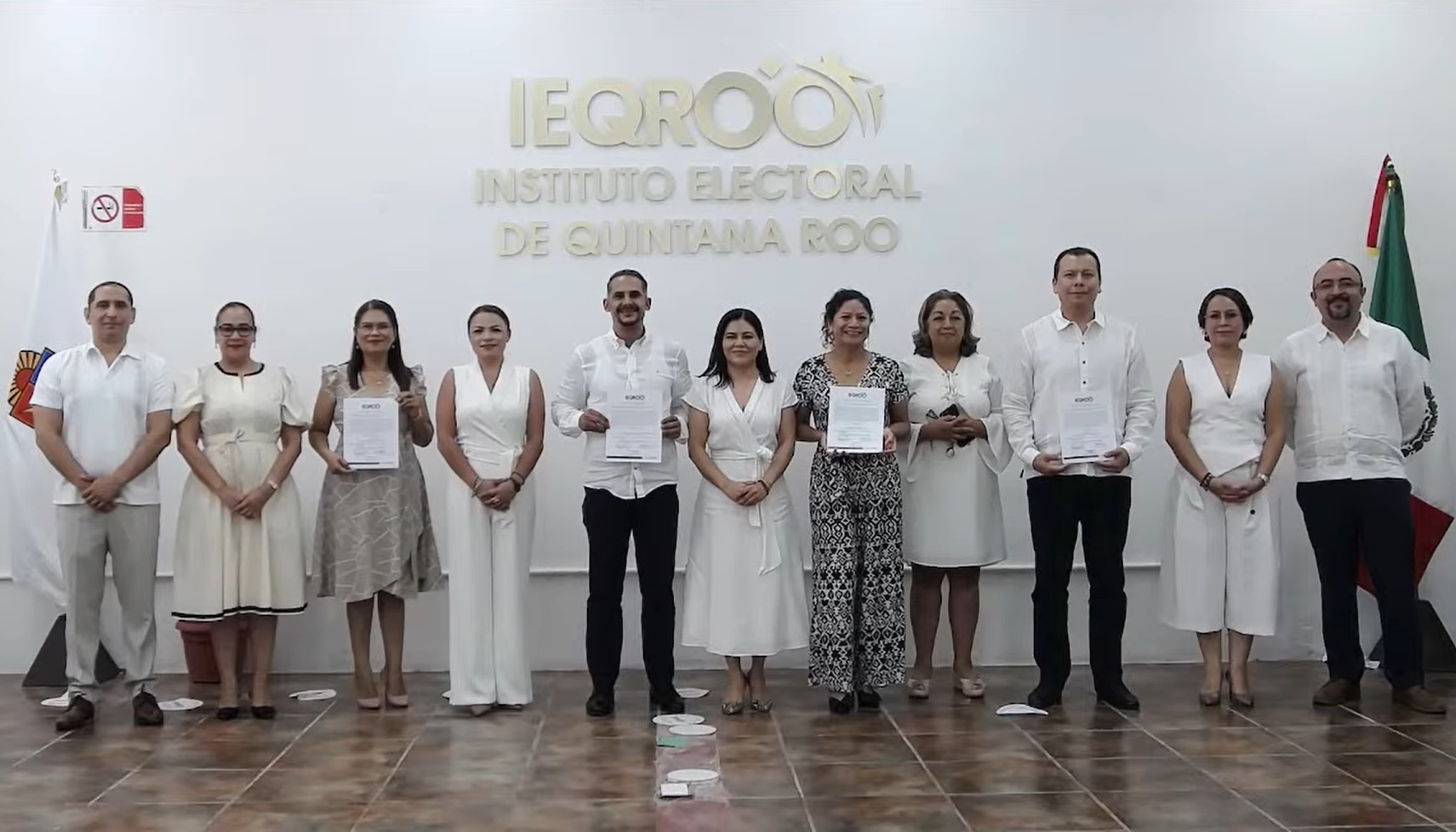 Posteriormente, la presidenta del Ieqroo, Rubí Pacheco Pérez, encabezó junto con consejeras, consejeros electorales y la secretaria ejecutiva la entrega de las constancias de mayoría y validez.