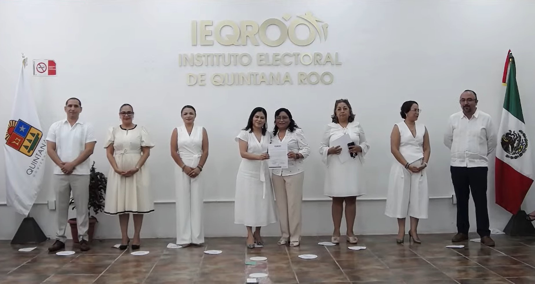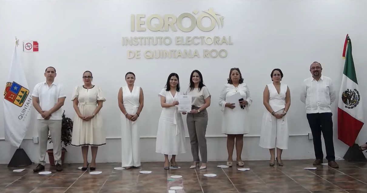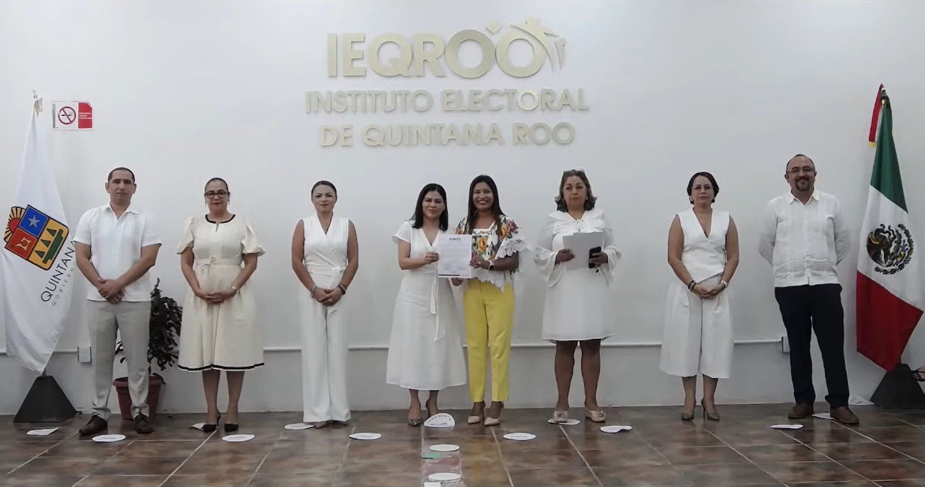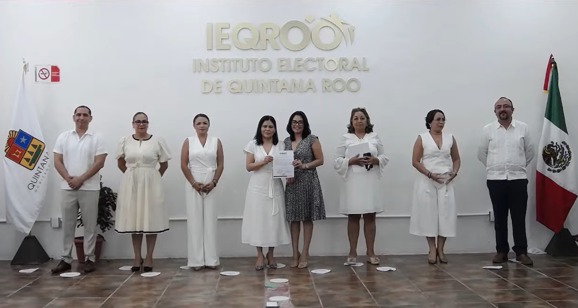 Posteriormente, la presidenta del Ieqroo, Rubí Pacheco Pérez, encabezó junto con consejeras, consejeros electorales y la secretaria ejecutiva la entrega de las constancias de mayoría y validez.