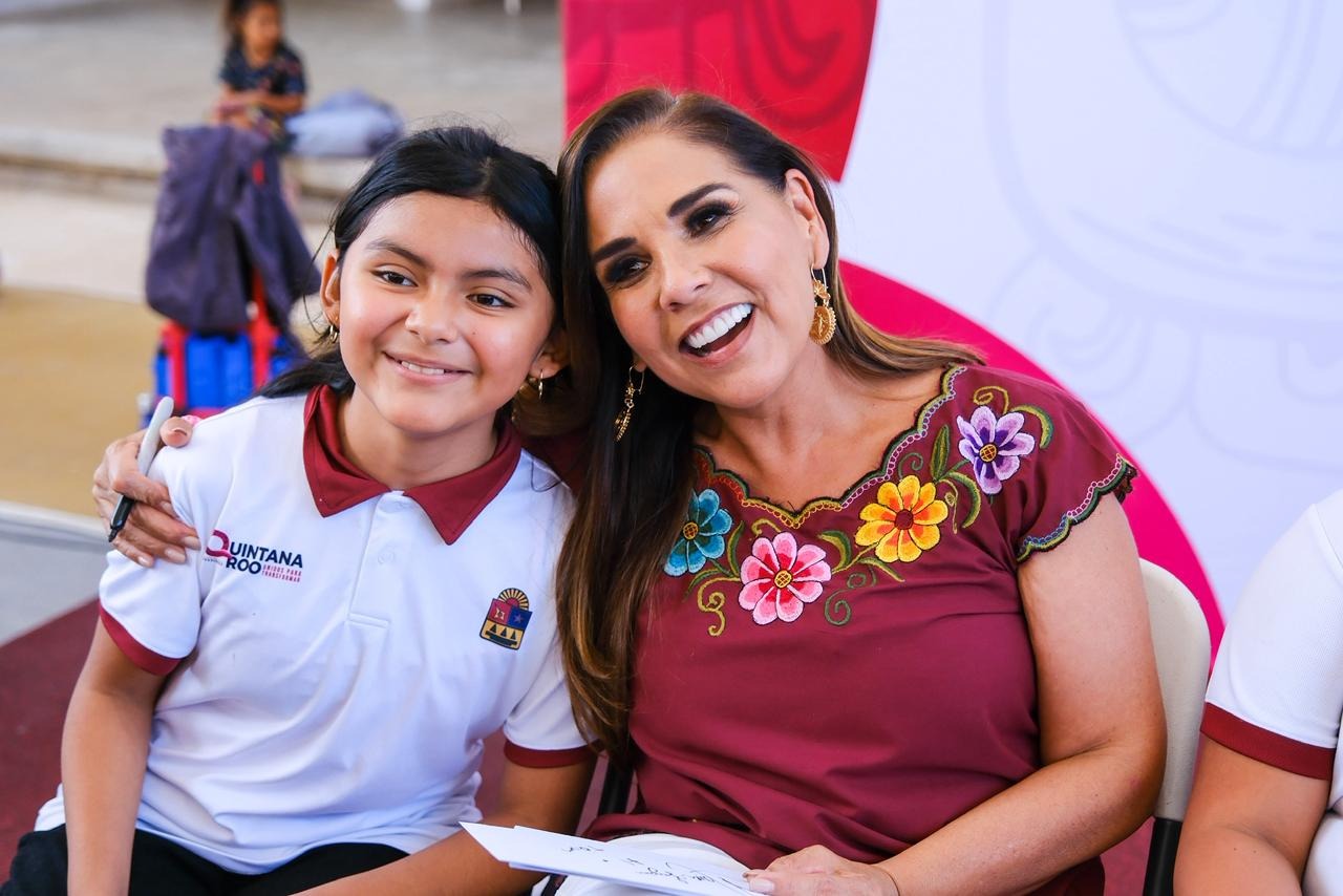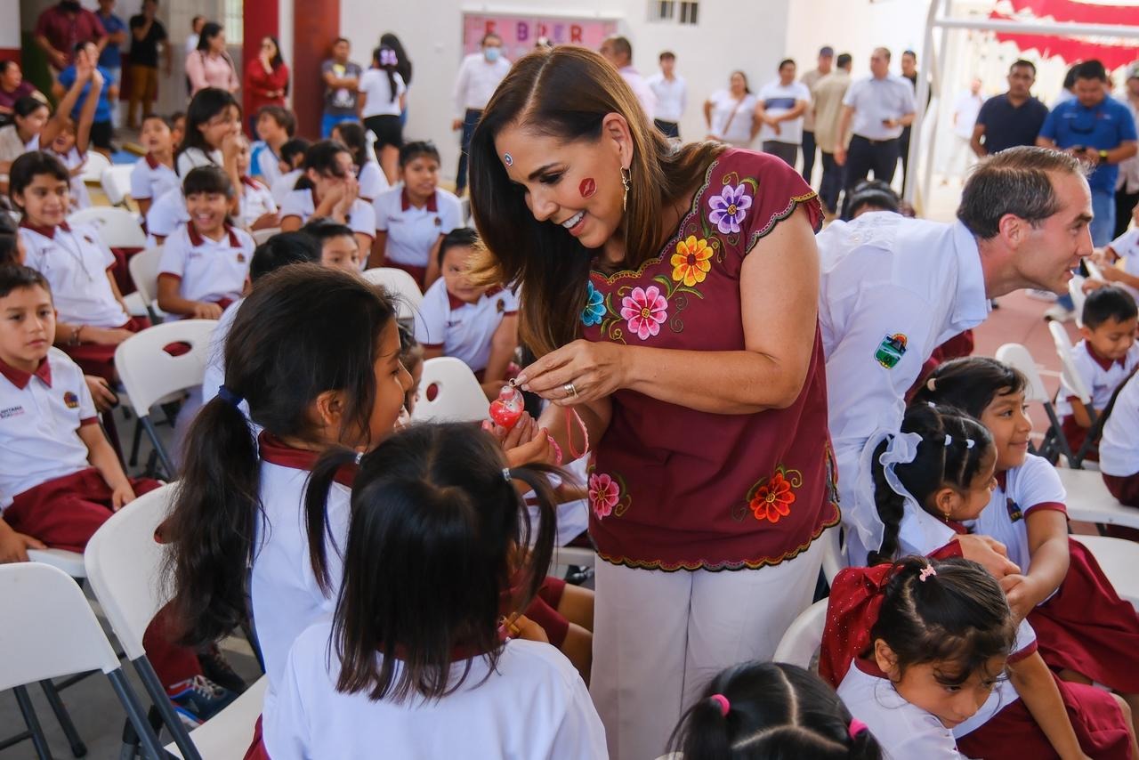 Tulum.- Al entregar el domo recién construido en la escuela primaria Tulum, en este municipio del mismo nombre, la gobernadora Mara Lezama Espinosa exhortó a alumnas y alumnos a tomar decisiones correctas, a evitar normalizar la violencia y a vivir con el derecho de ser felices y alcanzar sus sueños.