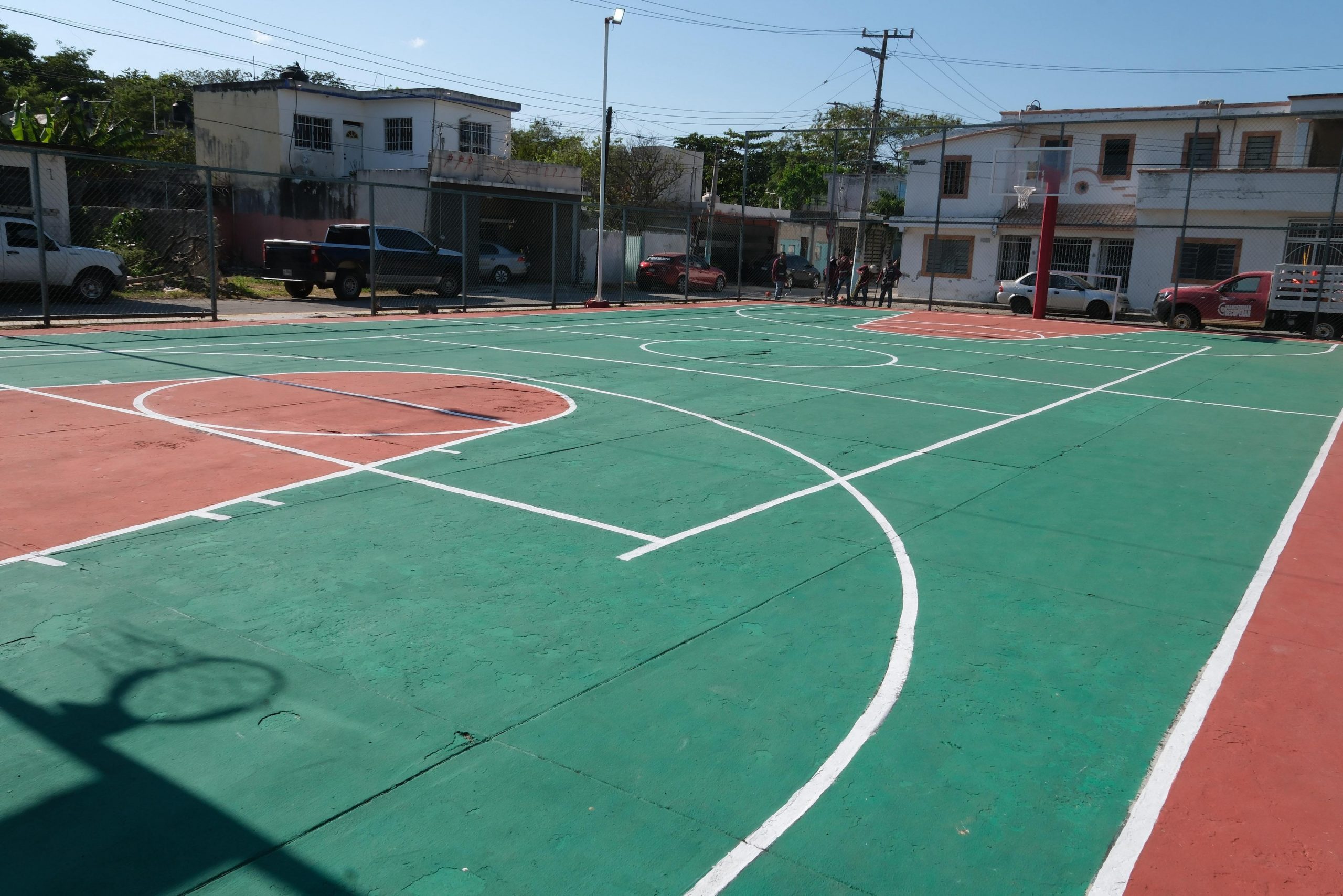 “Está aquí todo el equipo del gobierno del estado, trabajando 24/7 para dejar en buenas condiciones este parque. Ya se pintaron de amarillo todas las guarniciones, las bancas, las gradas, se le dio pintura completa a la cancha de básquetbol, los postes, las canastas con sus redes, limpieza de tableros y se cambiaron 10 reflectores led para la iluminación que es super importante”, dijo la Gobernadora.