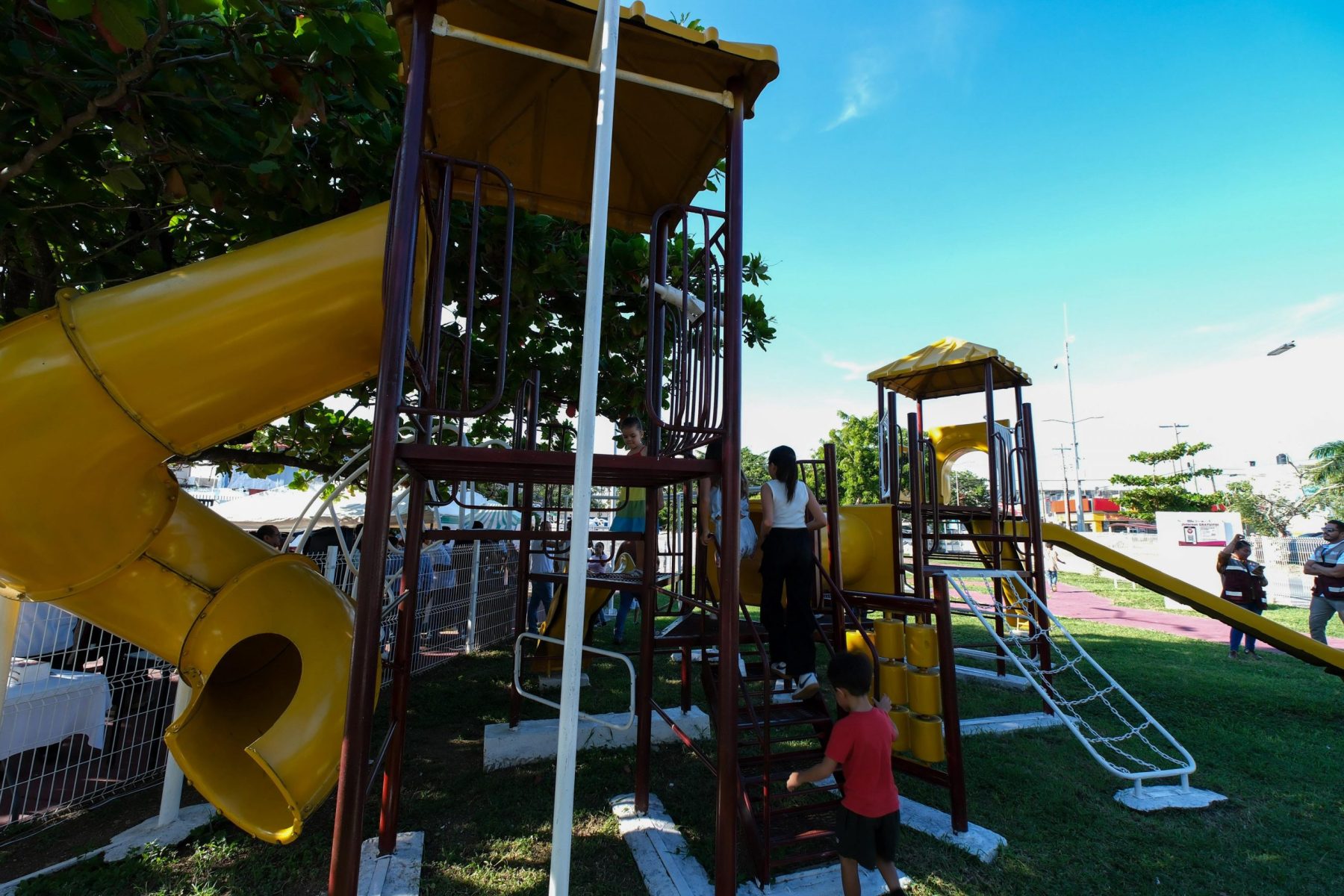 “Hacemos que estos espacios vuelvan a brillar para que las niñas, los niños, los adolescentes, las mamás, puedan tener un lugar seguro para la convivencia familiar, la construcción de comunidad y generar armonía social”, expresó la titular del Ejecutivo.
