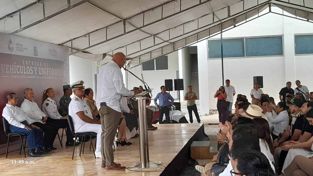 “Con el firme compromiso de fortalecer las capacidades operativas y dignificar al personal de la Fiscalía General del Estado de Campeche, entregamos vehículos y piezas de uniformes.