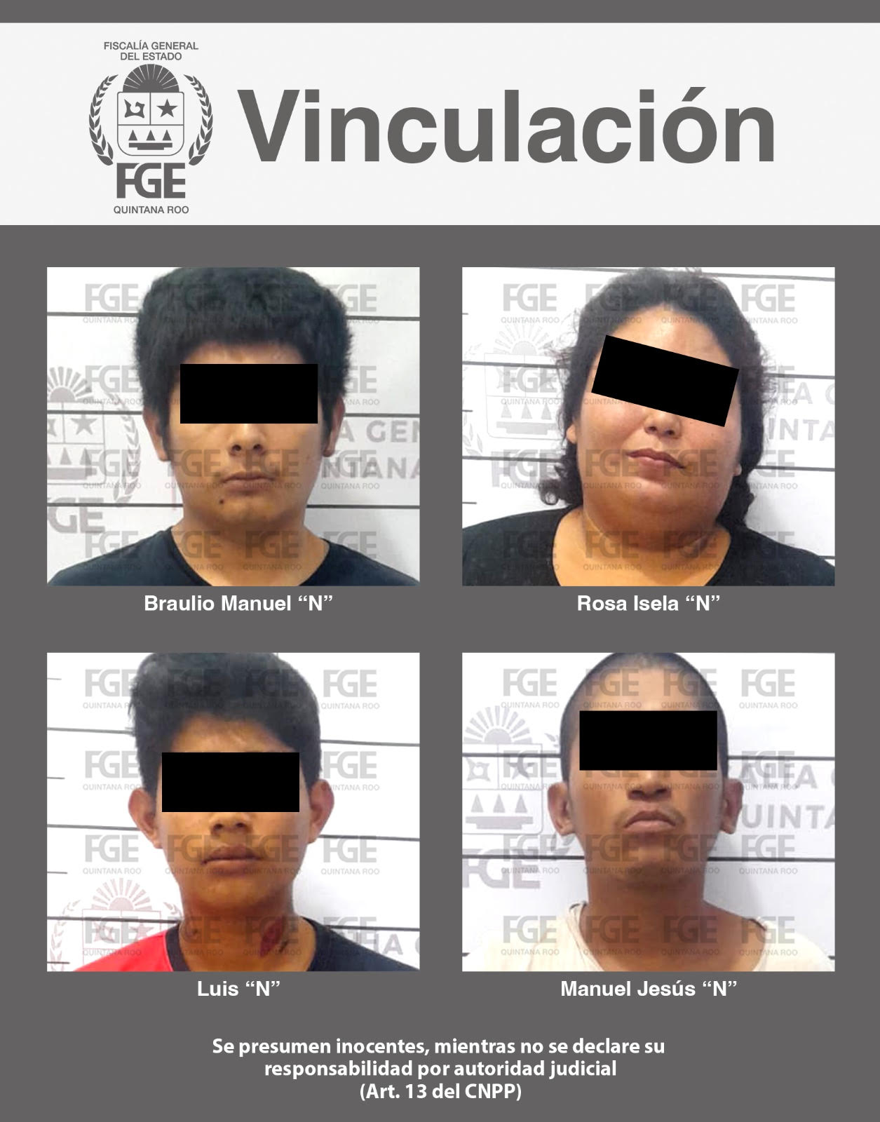 Los imputados, identificados como Rosa Isela “N”, Luis “N”, Manuel Jesús “N” y Braulio Manuel “N”, deberán permanecer en prisión preventiva justificada durante el desarrollo de su juicio.