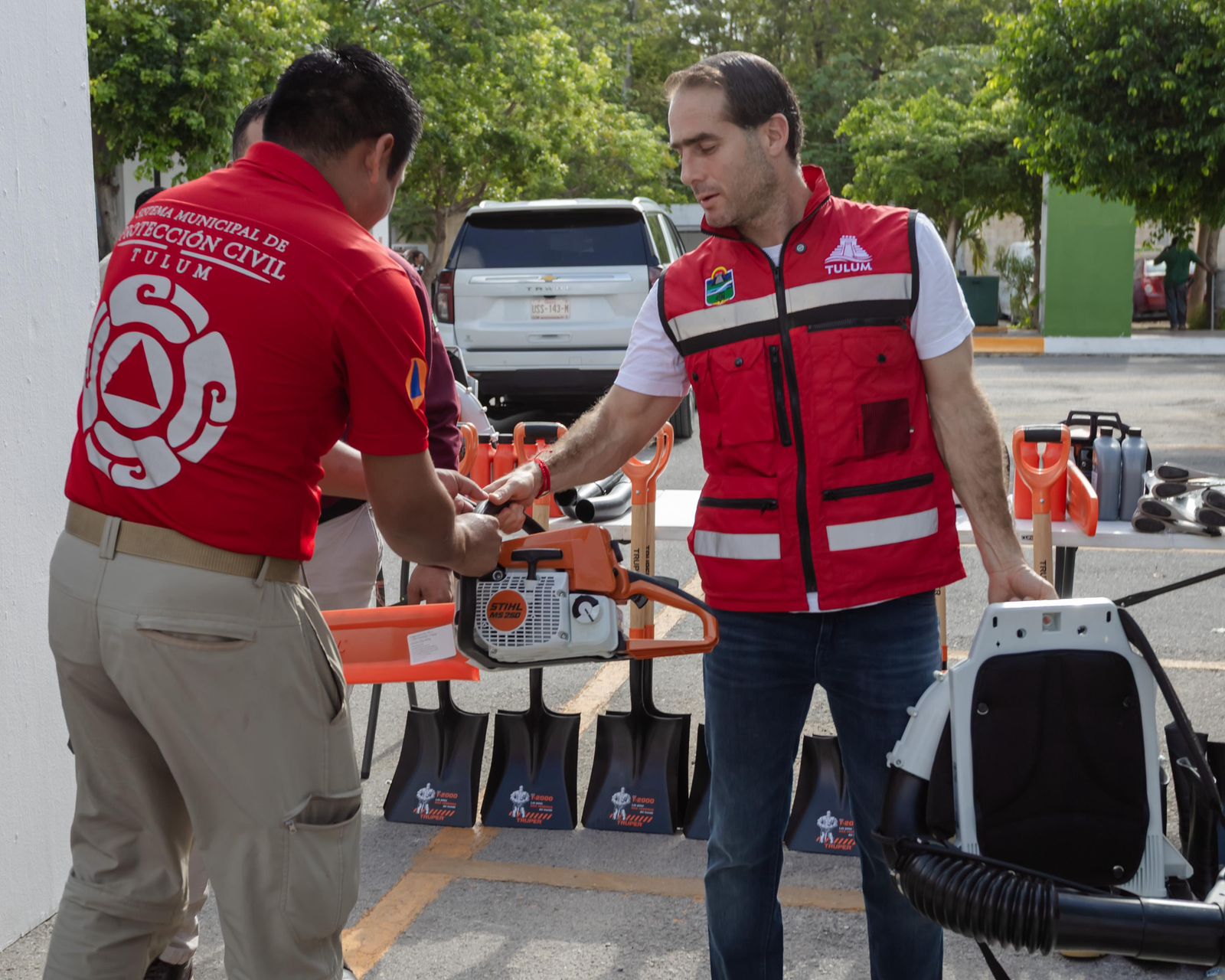 TULUM  a 04 de julio. La Protección Civil y los Bomberos de Tulum es fortalecida gracias a la entrega de equipo y herramientas que mejorarán su respuesta ante emergencias, garantizando la seguridad de los habitantes y visitantes de este destino turístico. Esta iniciativa forma parte de las políticas de seguridad implementadas por el presidente municipal, Diego Castañón Trejo.