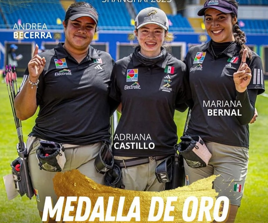 Las mexicanas Andrea Becerra, Mariana Bernal y Adriana Castillo conquistaron este viernes la medalla de oro en la prueba por equipos femenil de tiro con arco compuesto tras superar a India en la final de la Copa del Mundo que se celebra en Shangai, China. Las tricolores se impusieron primero a China Taipei para avanzar a la semifinal, donde vencieron a Turquía. Ya en el duelo decisivo consiguieron el primer puesto al ganar por 234-222 a las representantes de India.