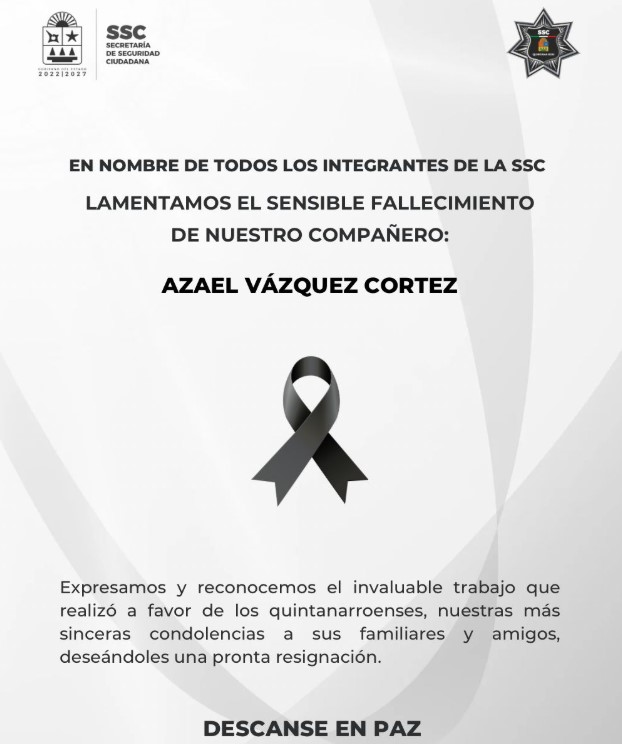 La Secretaría de Seguridad Ciudadana de Quintana Roo (SSC) dio a conocer la información, mediante una publicación en redes sociales en la que lamenta el sensible fallecimiento del trabajador.
