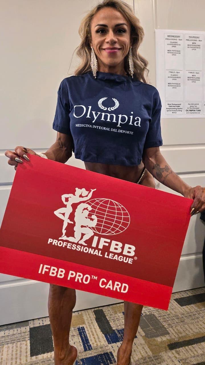 “Ese 30 de agosto es el día que nunca olvidaré, el día que me convertí en IFBB Pro Wellness”, cuenta emocionada. Su voz todavía se quiebra al recordar cómo escuchó su nombre resonando entre aplausos y miradas de asombro en Pittsburgh. Ese triunfo no solo fue una medalla, sino la llave dorada: la Pro Card, el pase oficial para competir en el escenario más grande del fisicoculturismo, el Mr. Olympia, que este año se celebrará el 9 de octubre en Las Vegas.