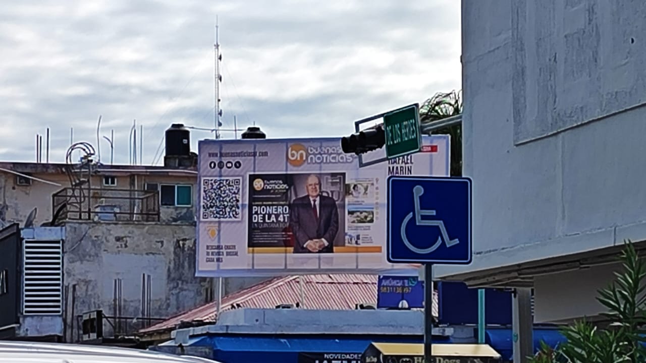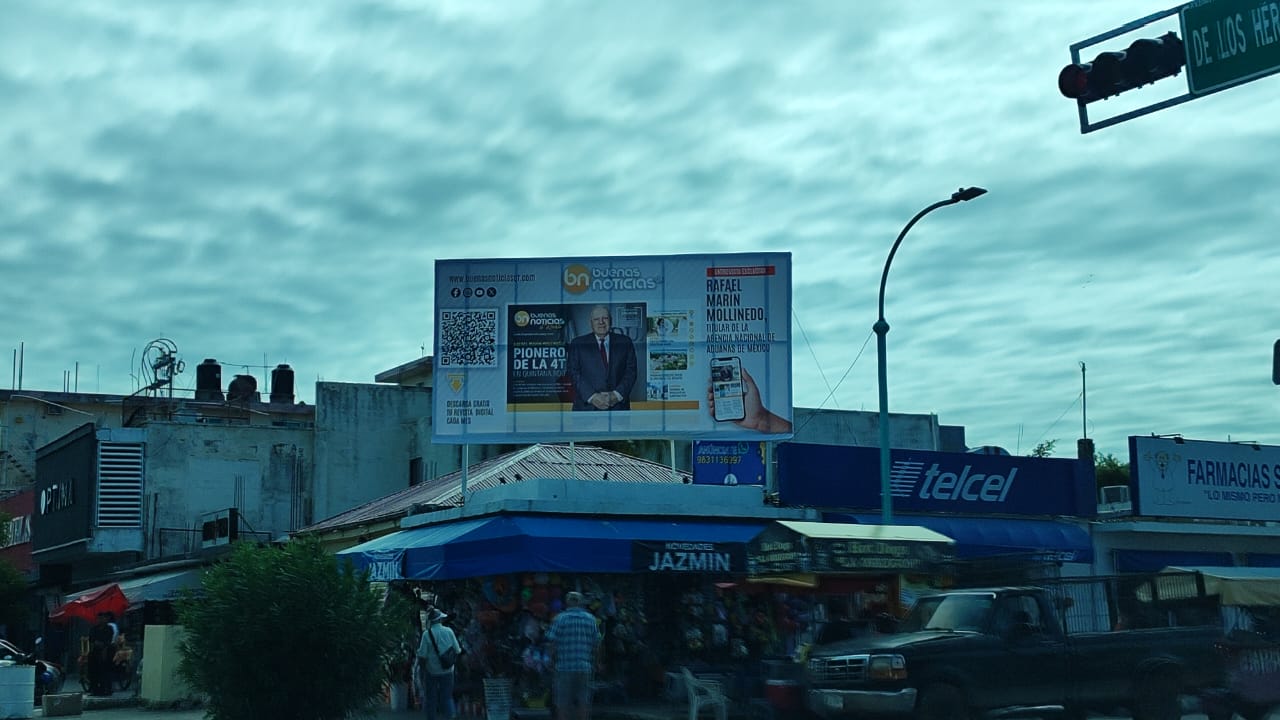 El espectacular, que reproduce la portada de una revista bajo el título “Rafael Marín: Pionero de la 4T en Quintana Roo”, presenta al funcionario en una supuesta entrevista exclusiva que destaca su trayectoria y aportes al proyecto federal. Aunque el contenido evita cualquier mención explícita sobre aspiraciones electorales, su instalación en el cruce de la avenida Héroes con Álvaro Obregón, uno de los puntos más transitados de la ciudad produce inevitable especulación entre actores y analistas de la política estatal.
