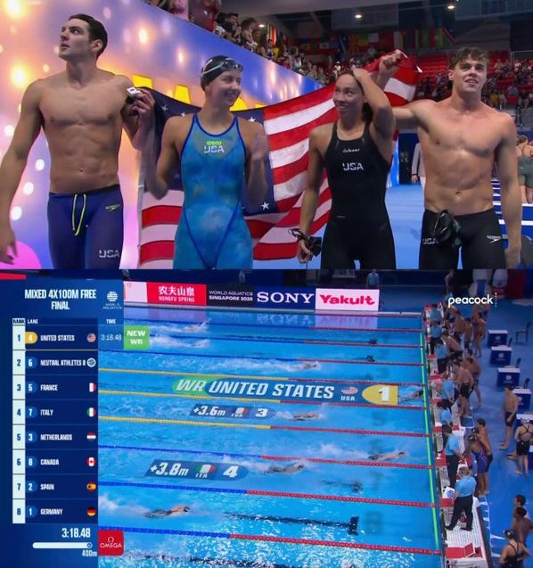 The Mixed 4×100 Frreestyle Relay of the United States of America just rewrote the record books! 📖🔥#AQUASingapore25 #Swimming pic.twitter.com/MSGeSWaUyK