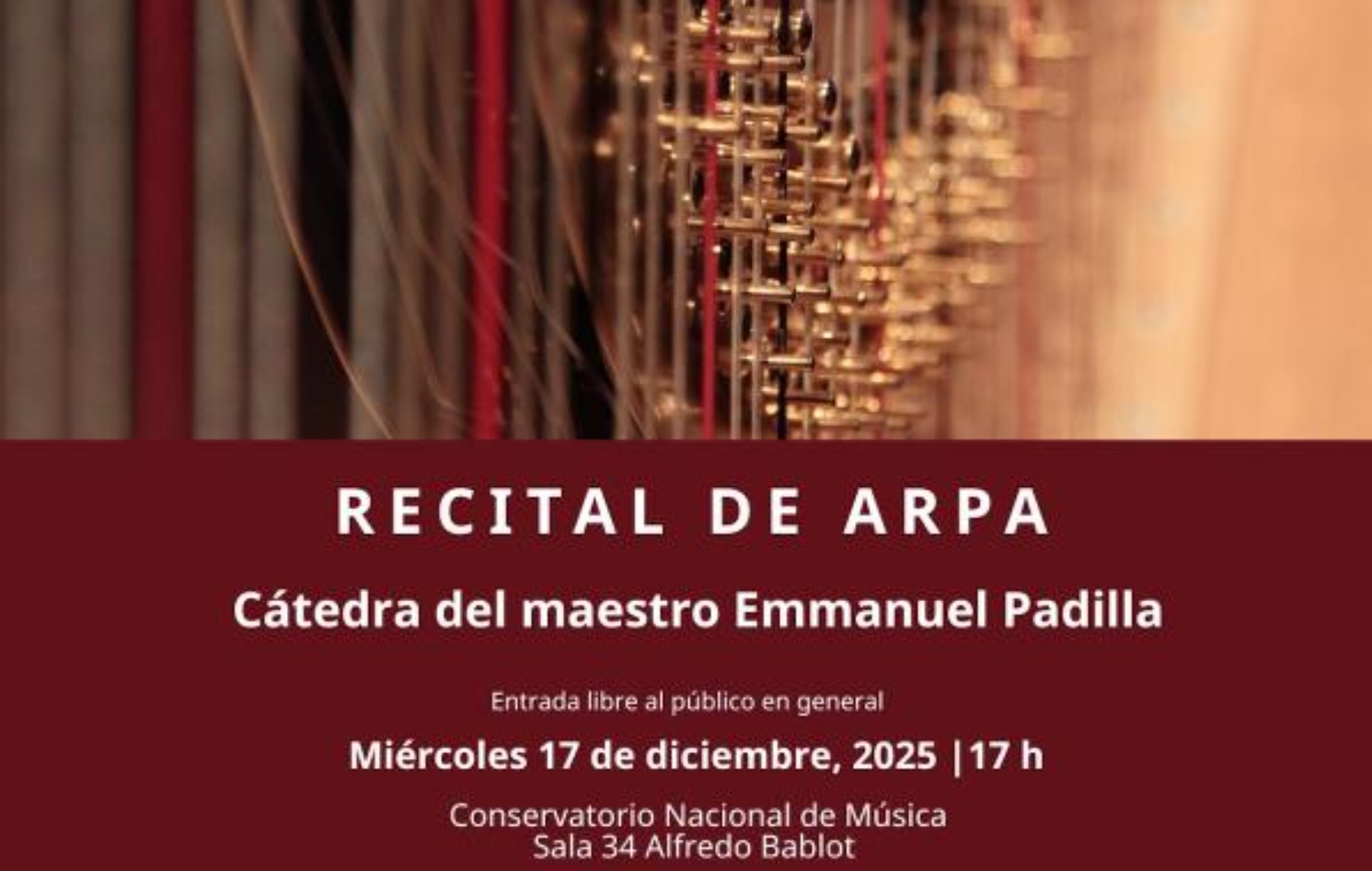 En este concierto de fin de año participarán siete estudiantes de la Cátedra de Arpa del CNM, desde una alumna del nivel infantil, de nueve años, hasta una estudiante de maestría, detalló el maestro Emmanuel Padilla, titular de la cátedra.