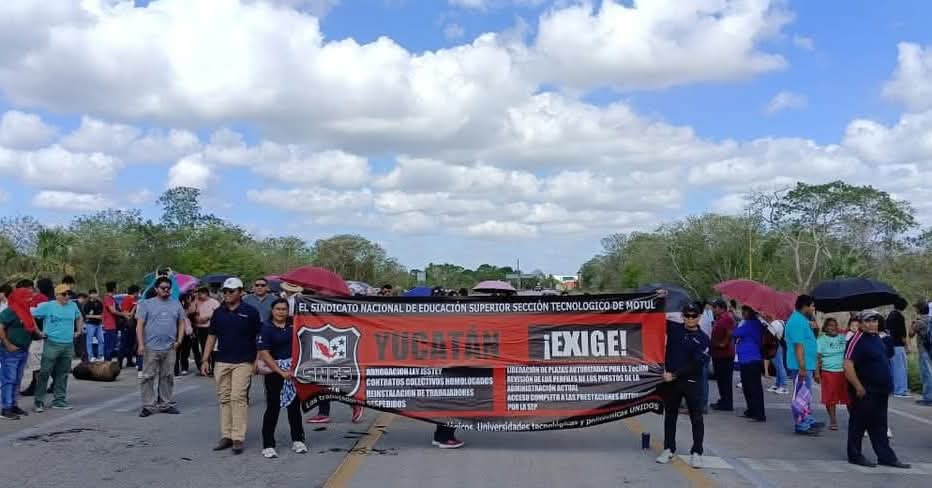 Estudiantes del TEC de Motul Bloquean Carretera Mérida-Tizimín