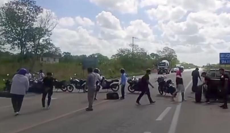 Tizimín, Yuc. a 11 de junio de 2025.- Un grupo de estudiantes del Tecnológico de Motul bloquearon esta mañana una parte de la carretera Mérida-Tizimín, a la altura de este municipio.
