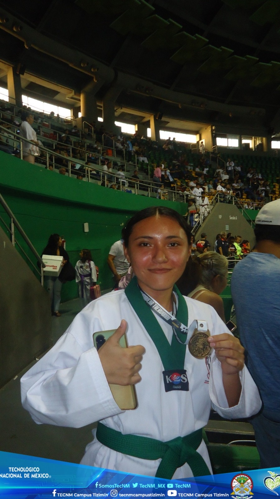Primer lugar: Marinthia Alejandra Cetz Navarro (Carrera de Informática): Medalla de Oro en la categoría de Formas. Su precisión y elegancia en la ejecución la llevaron a lo más alto del podio.