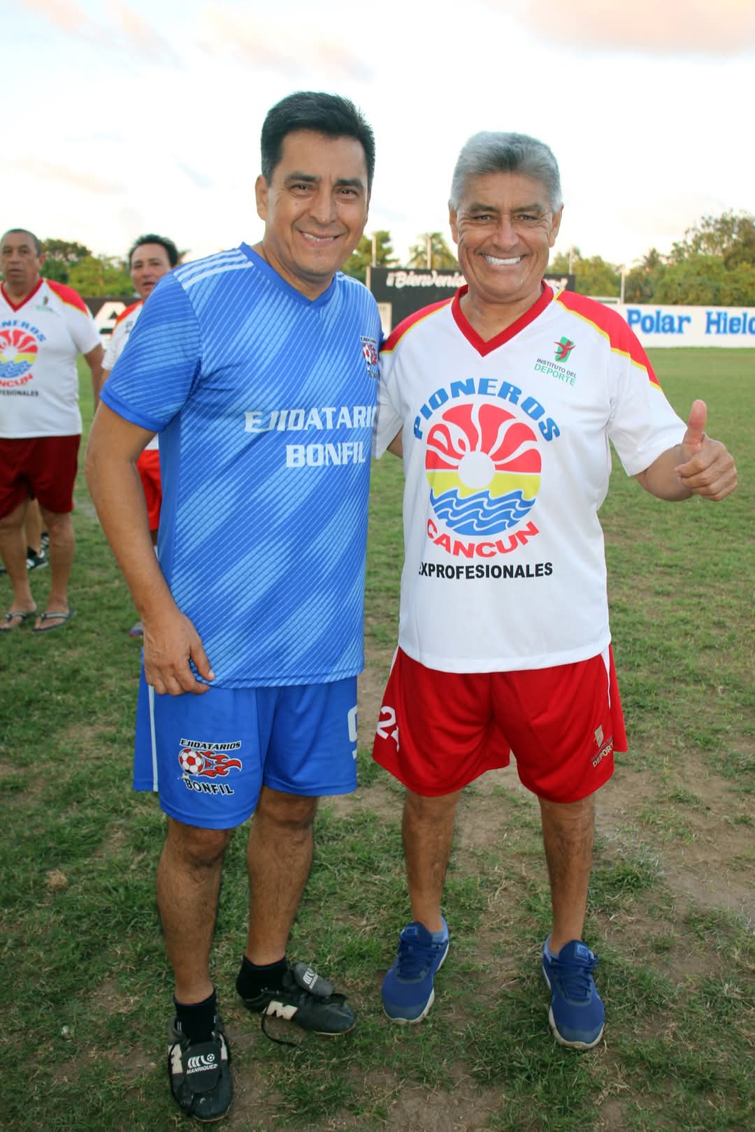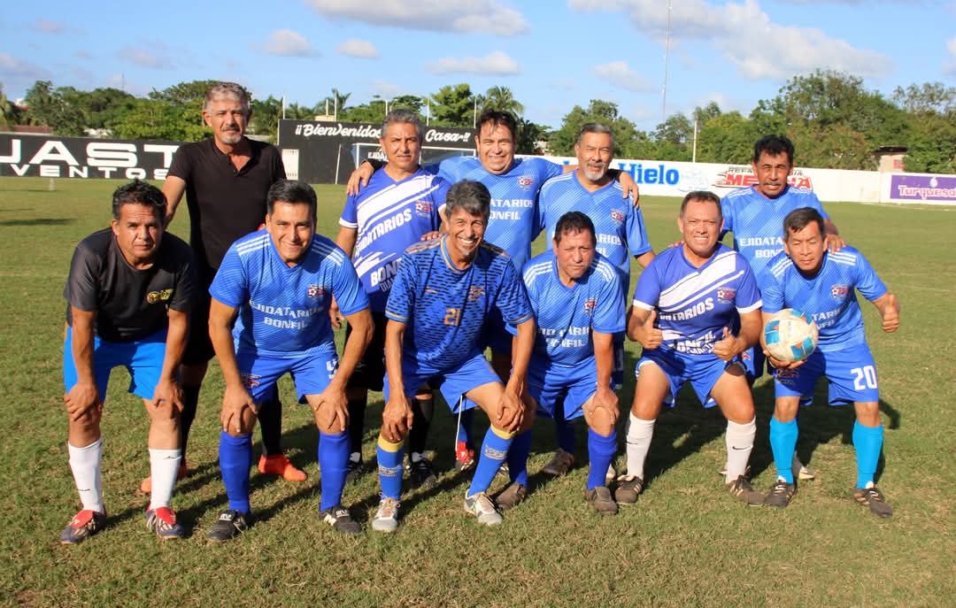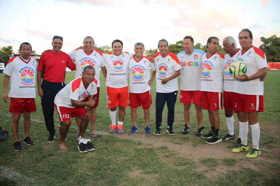 CANCÚN Q. ROO, 23 de diciembre.- Gran partido entre ex profesionales de Pioneros y Ejidatarios Bonfil Diamante en el empastado del campo La Parcela.