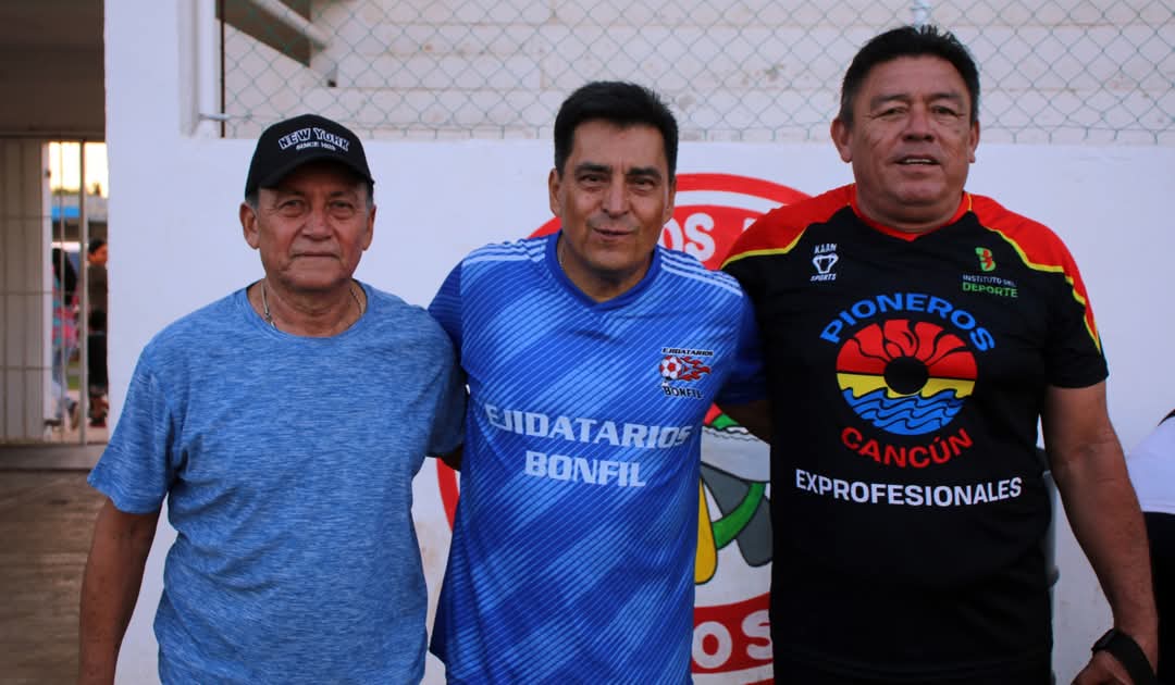 CANCÚN Q. ROO, 23 de diciembre.- Gran partido entre ex profesionales de Pioneros y Ejidatarios Bonfil Diamante en el empastado del campo La Parcela.