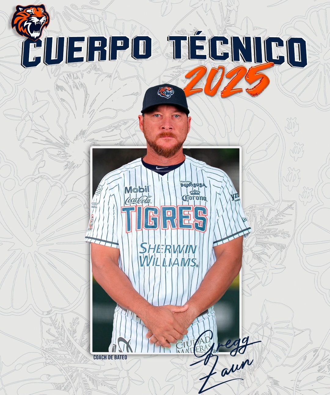 CANCÚN, Q. ROO a 7 de enero.- El armado de los Tigres de Quintana Roo rumbo a la Temporada 2025 de la Liga Mexicana de Beisbol (LMB) y la del 70 aniversario de la organización, no se limita a peloteros, ya que este martes la directiva bengalí, hizo oficial la llegada del ex receptor de Grandes Ligas, Gregg Zaun, quien se convertirá en el coach de bateo, dentro del cuerpo técnico que encabeza el mánager CJ Retherford.